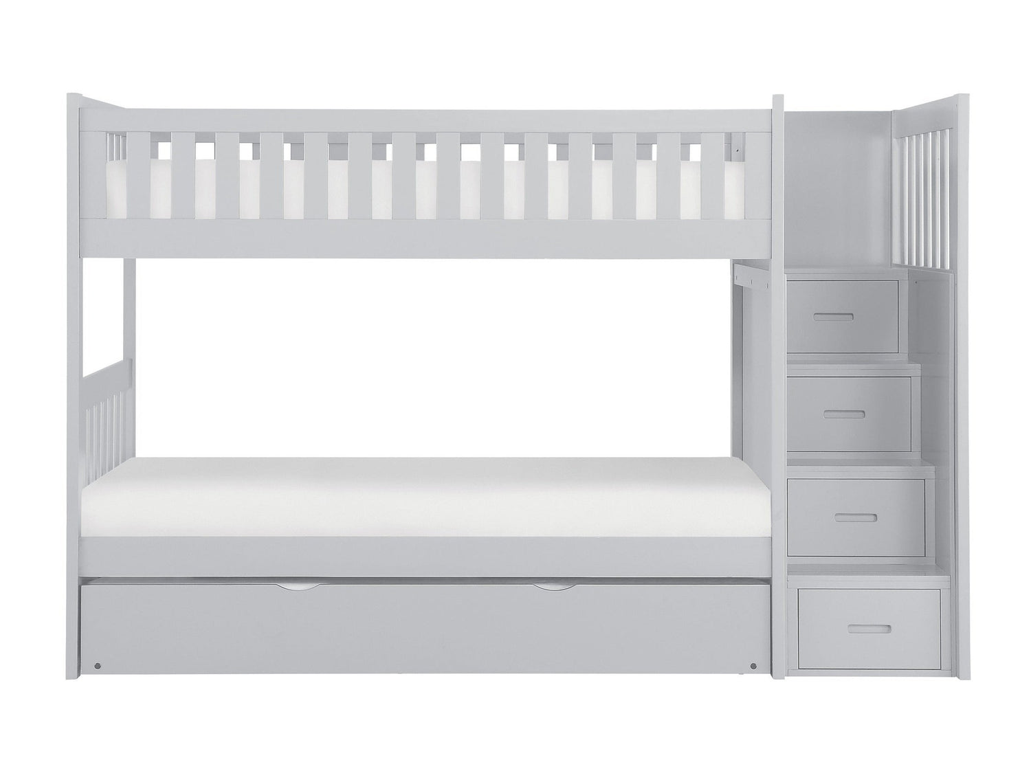 - Item Name: Orion Gray Twin/Twin Step Bunk Bed With Twin Trundle
