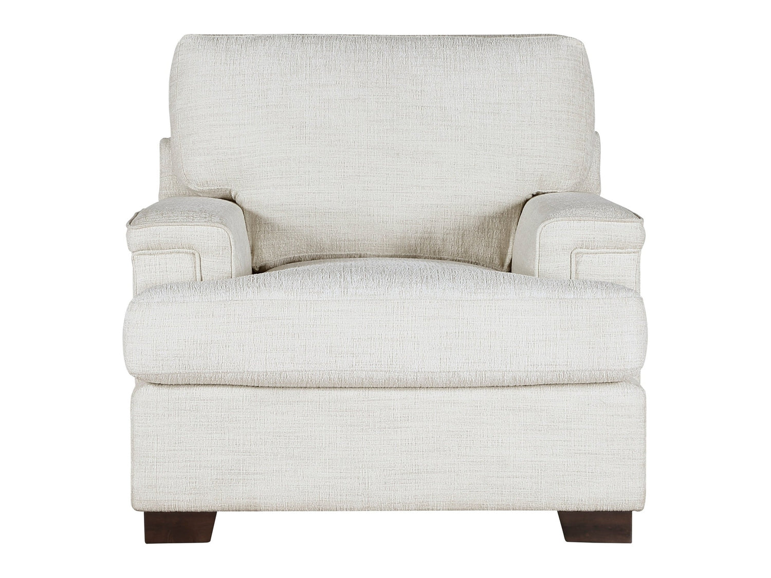 Subtle modern elegance lends its design inspiration to create the lines of the Orson Collection. Substantially sized for your comfort, the distinct profile of the chair lends ample seating space to your living room. Cream chenille fabric upholstery covers the collection with espresso-hued wood legs providing support.
