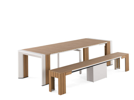 - Set Includes: 1 Transformer Outdoor Table, 2 Transformer Outdoor Bench