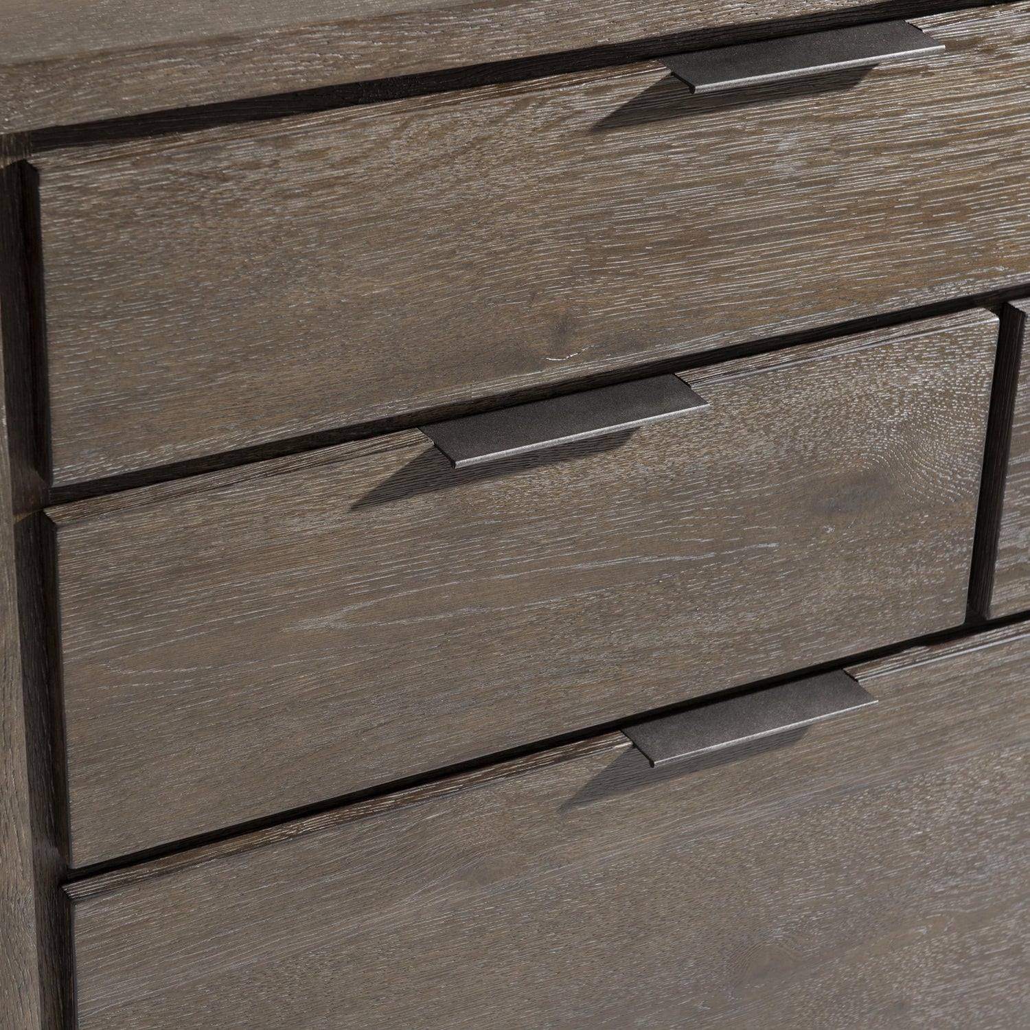 - Seven pull-to-open, soft-close drawers with applied textured aluminum tab pulls in Atra finish