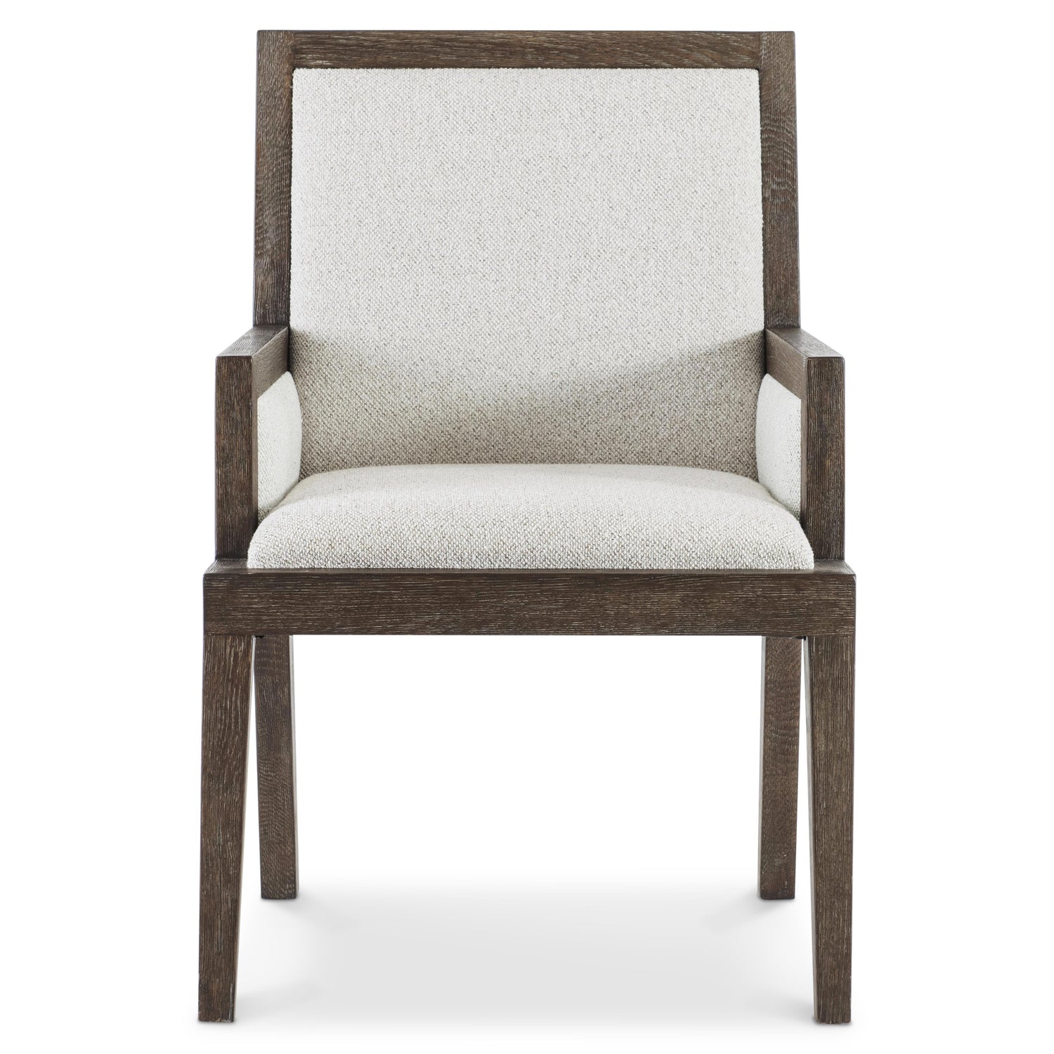 - Upholstered inback, outback, seat and inset panel on arms, framed in wire-brushed oak in Cassel finish