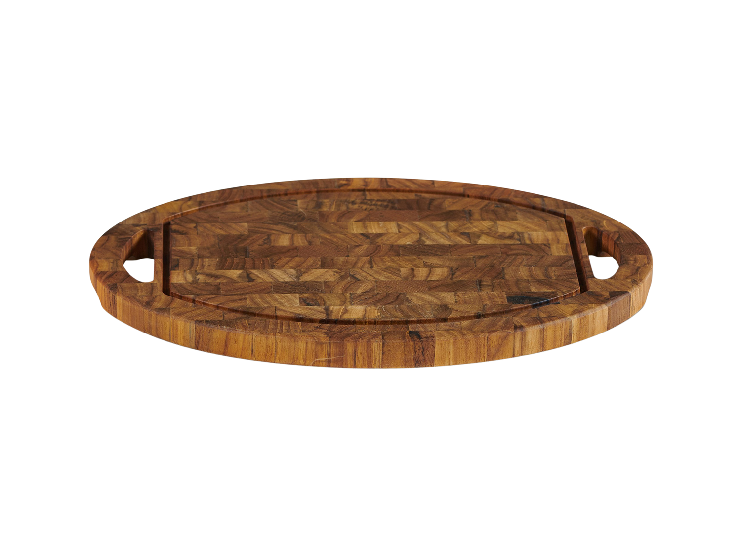 - Item Name: Oval Teak Cutting Board with Juice Groove and Handles