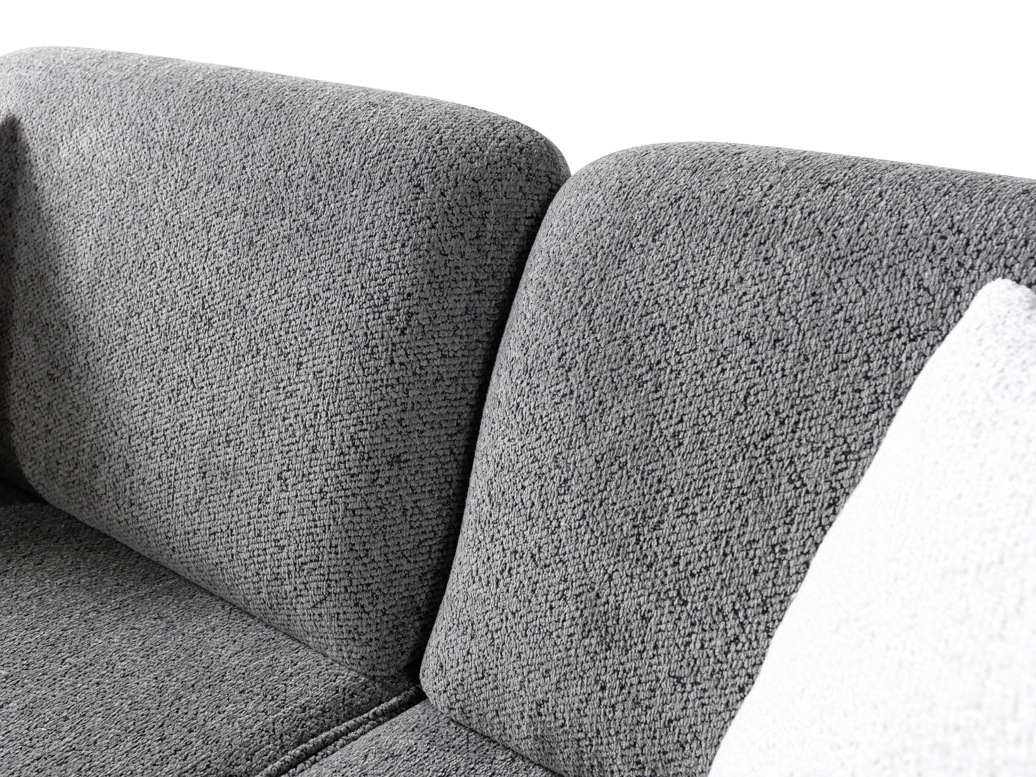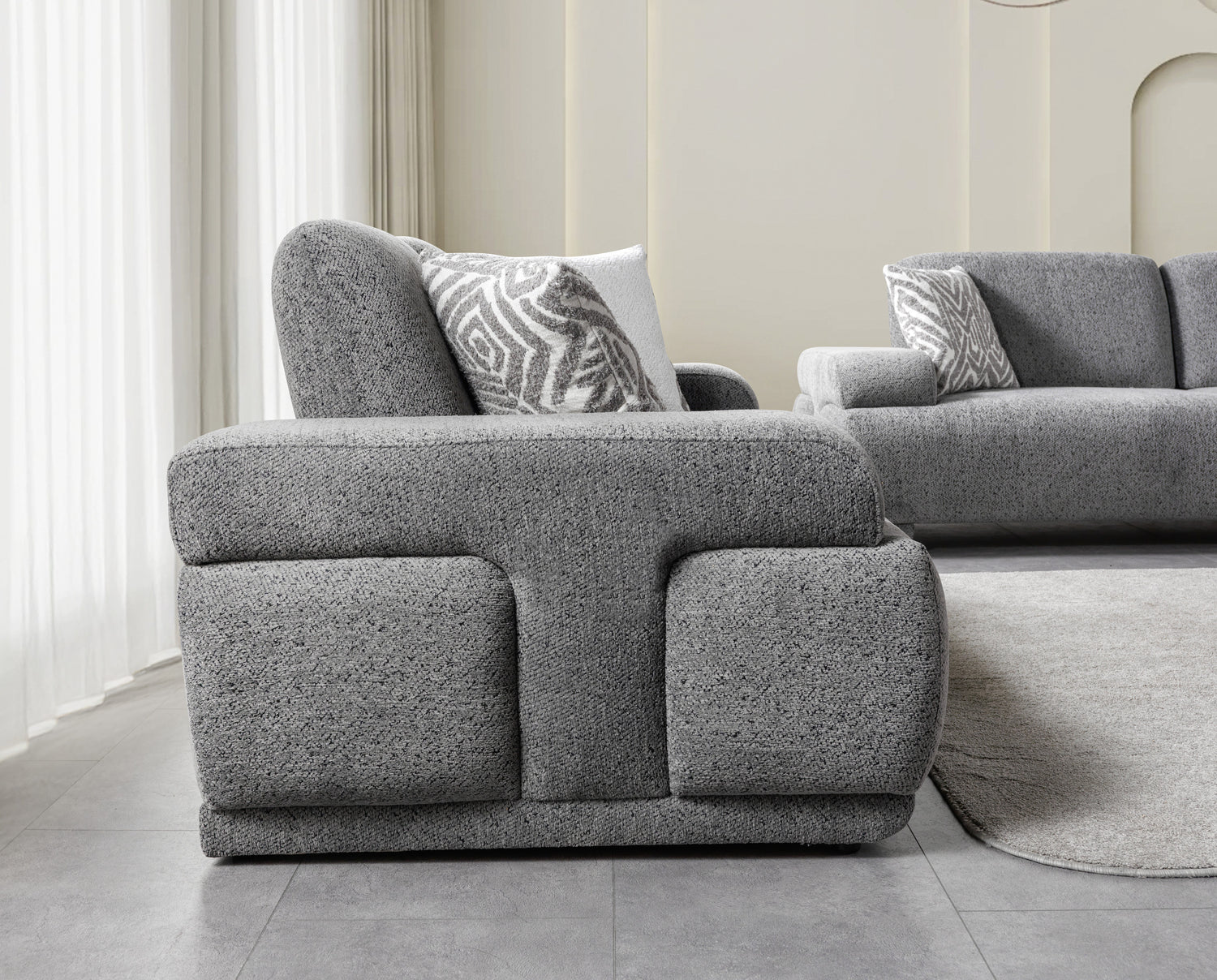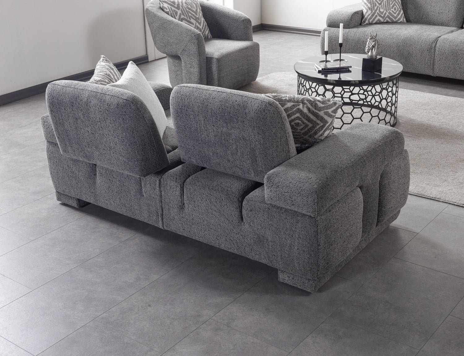 The Pablo Gray Loveseat combines modern style with a calm, inviting ambiance, making it an ideal choice for intimate seating areas. Its clean geometric lines and premium high-density boucle fabric contribute to a refined contemporary aesthetic. The neutral gray tone is complemented by matching cushions, enhancing visual harmony while maintaining a soft, elegant presence. With its cozy proportions and minimalist character, the Pablo Loveseat adds both comfort and sophistication to any home.