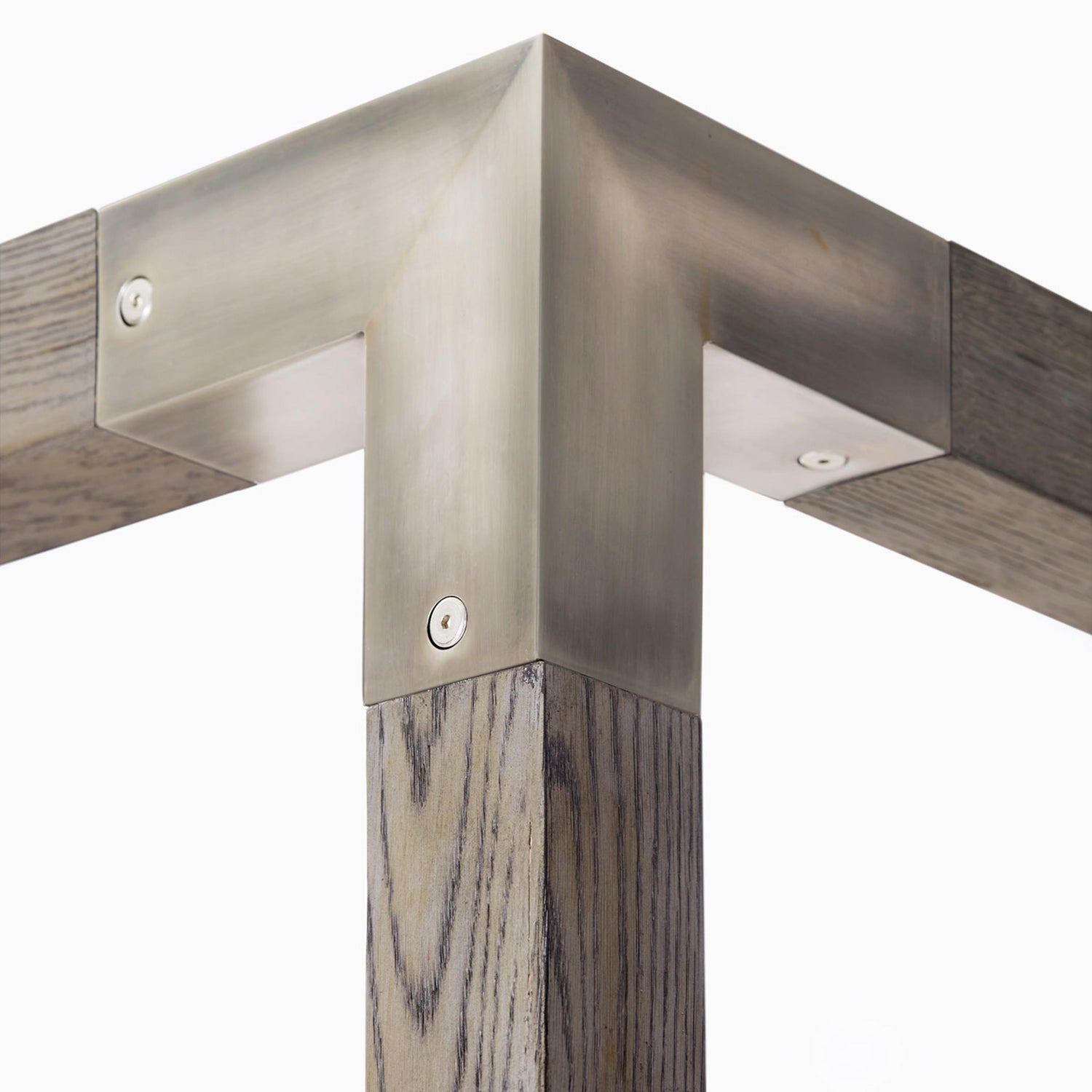 - Wood-framed headboard and footboard of oak solids and Rustic Flat Cut White Oak veneers in Rustic Gray finish