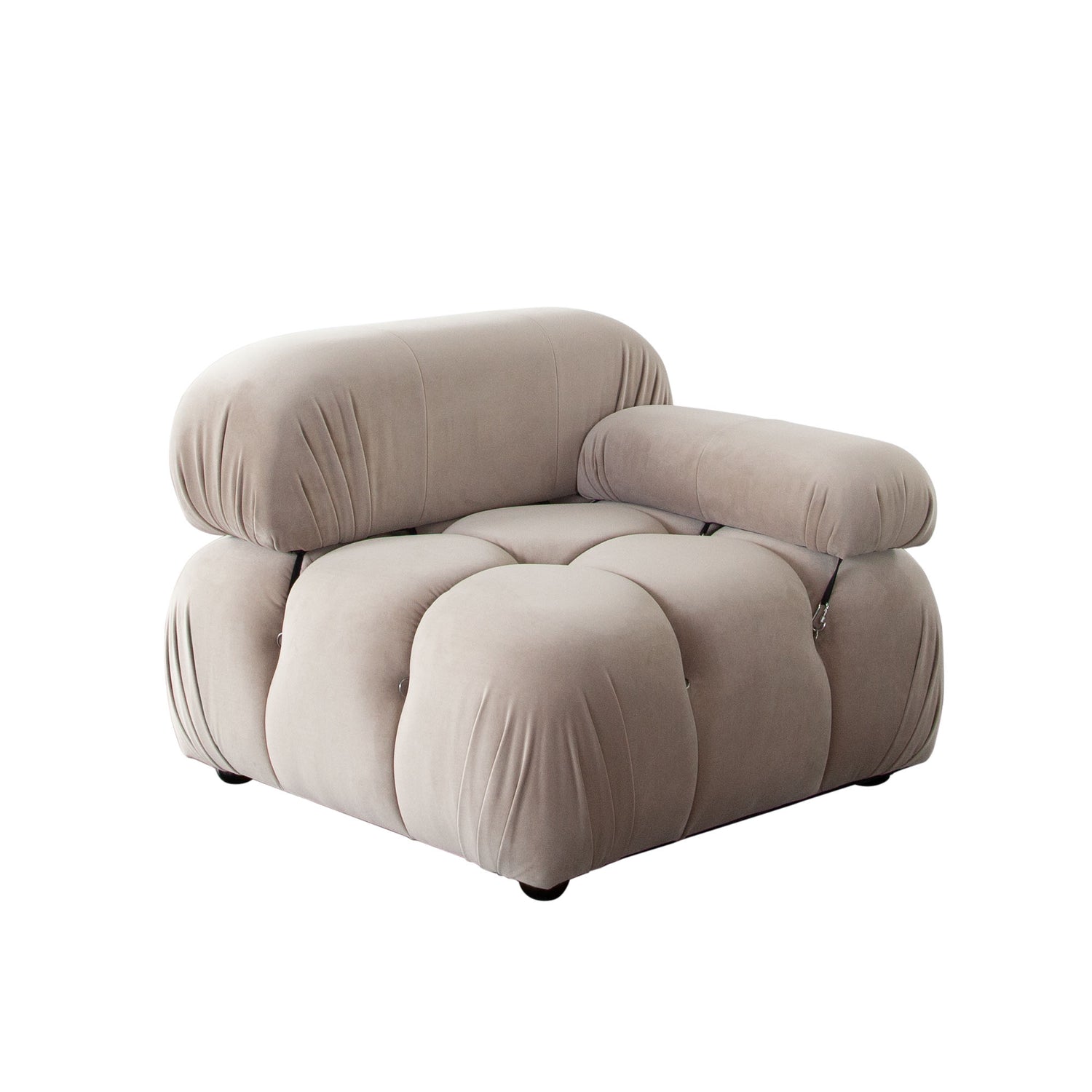 - Velvet Upholstery: Covered in Mink Tan Velvet, the fabric provides a soft-to-the-touch feel with a distinctive subtle sheen.