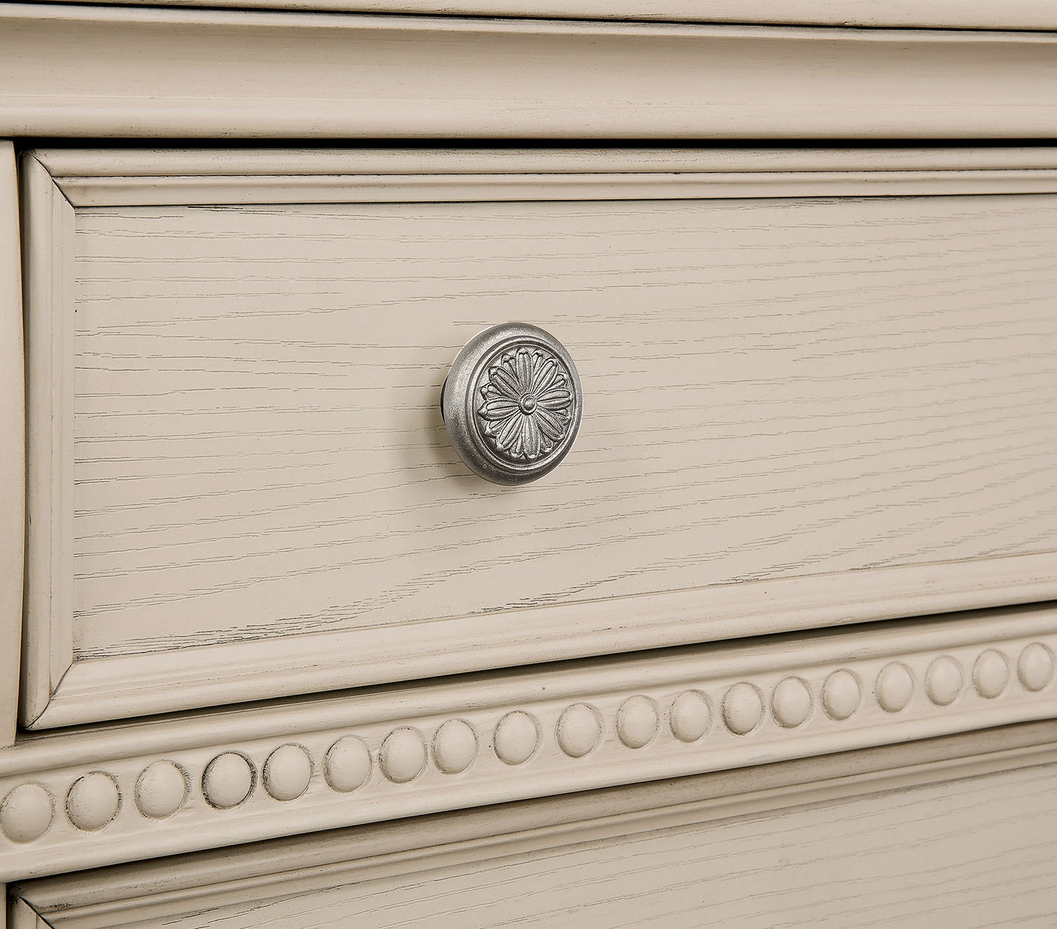 Pamphilos Antique White Queen Bed & 2 Nightstand & Dresser & Mirror