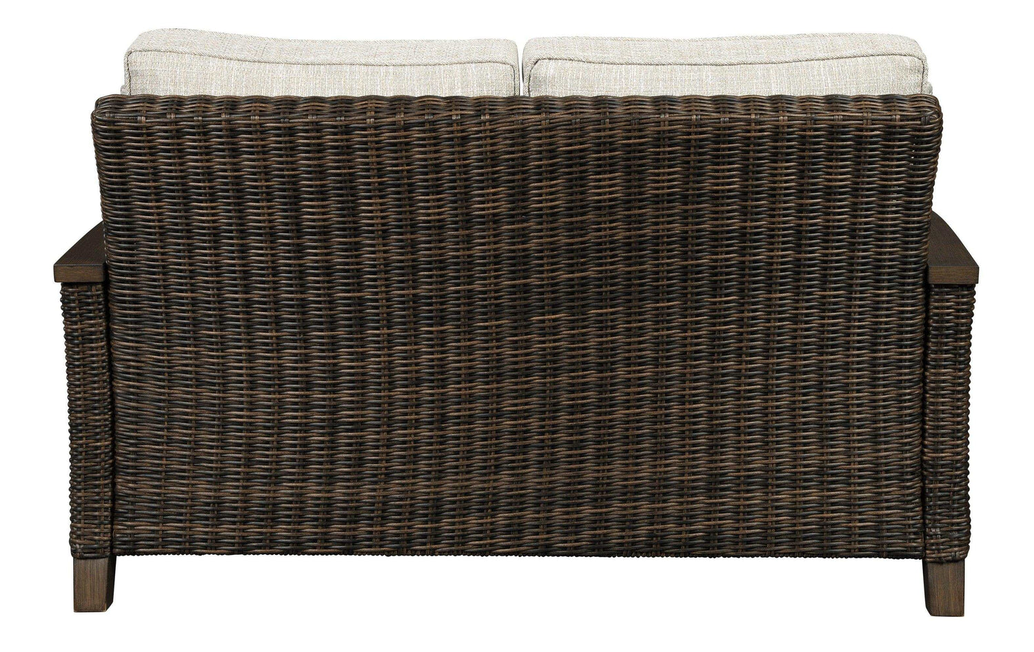 Pretty enough for trendy interiors, yet durable enough to weather the elements, this outdoor set rises to the challenge beautifully. Handwoven resin wicker over rust-proof aluminum merges high style with low maintenance. Rest assured, though the exposed armrests and feet look remarkably like wood, their sturdy aluminum construction is perfectly suited for al fresco living. Plush seat cushions and throw pillows wrapped in high-performing Nuvella® fabric aim to please.