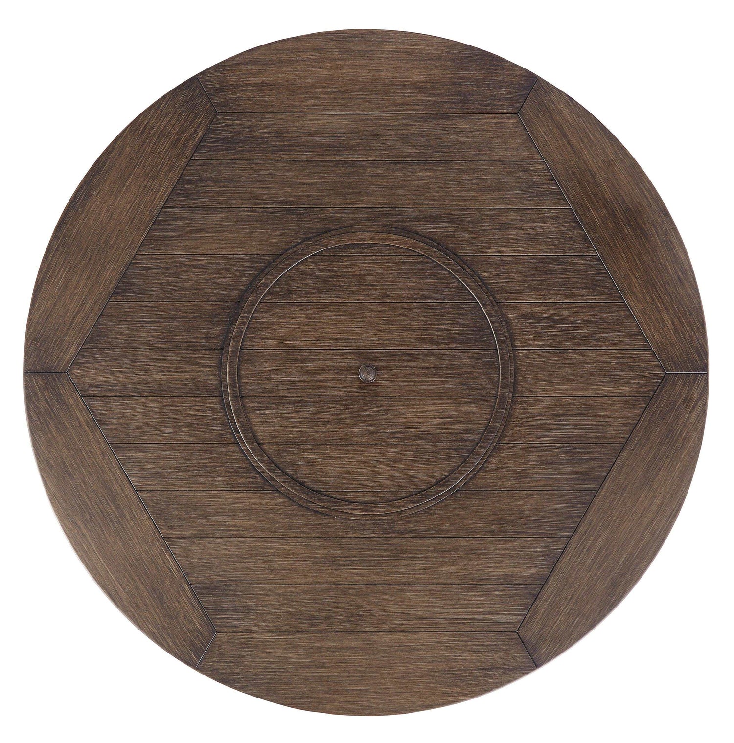 Turn your backyard space into your own piece of paradise with this outdoor fire pit table. Though this outdoor table looks remarkably like wood, it’s made of sturdy, rust-proof aluminum that’s perfectly suited for al fresco living. Enhancing the rustically refined aesthetic: side panels accented with all-weather, handwoven resin wicker. The result may look high maintenance, but rest assured, this outdoor piece is anything but. With the press of a button, ignite a flickering flame that dances over a bed of glass beads. And with room for four, it’s one highly accommodating outdoor fire pit table.