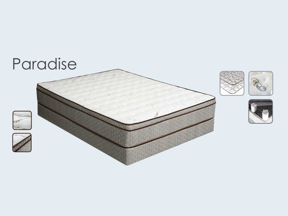 Paradise box pillow top Simplicity Collection mattress includes great components you expect from more expensive sets. Starting from the Rayon Bamboo Stretch Knit Fabric to the stucco multi-needle quilted border, this Paradise set looks as good as it feels. Multi-layer comfort layers with the high-profile Bonnel Innerspring, the Paradise set will give you time to unwind until your next vacation. The Leggett & Platt U-Guard provides proper edge support, giving you more corner-to-corner stretch space.