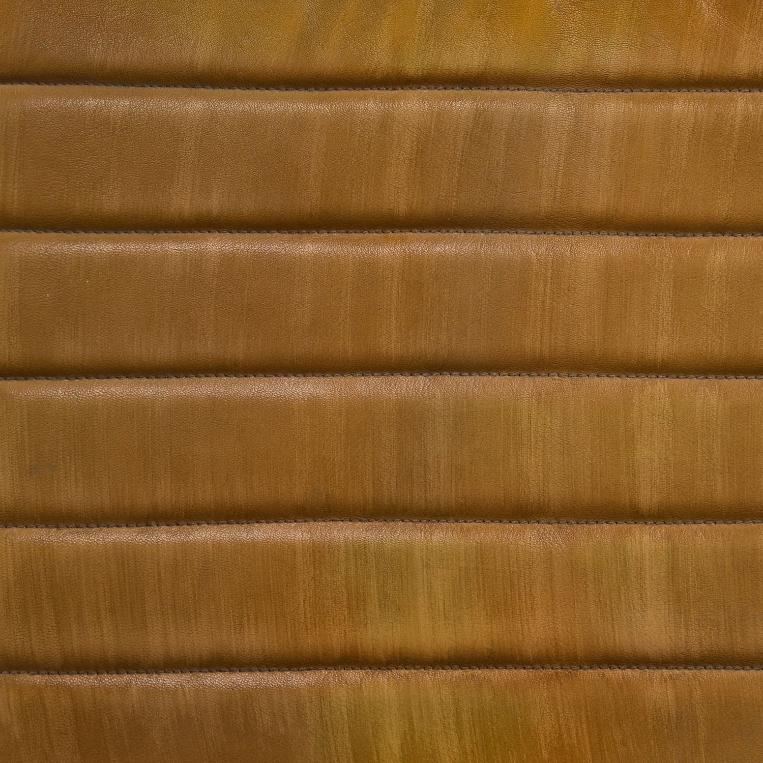 - Embrace industrial influence with comfortable counter stools featuring scoop seats, thick backs, and horizontally channeled leather upholstery, all supported by iconic slender rounded, splayed metal legs