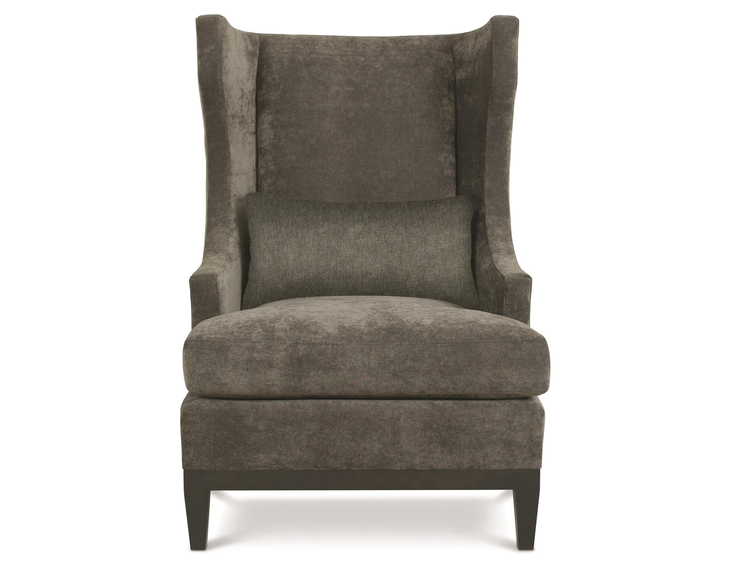 The Pascal Grey Fabric Chair is an armchair made from fabric that offers deep comfort. This chair updates a classic wing chair design with contemporary touches, providing a cozy traditional vibe suitable for present-day living spaces. Its design features graceful lines and a streamlined look. An exposed wood base with tapered legs that have a sleek appearance contributes a definite modern appeal. A plush down cushion and a lumbar pillow offer ample comfort.