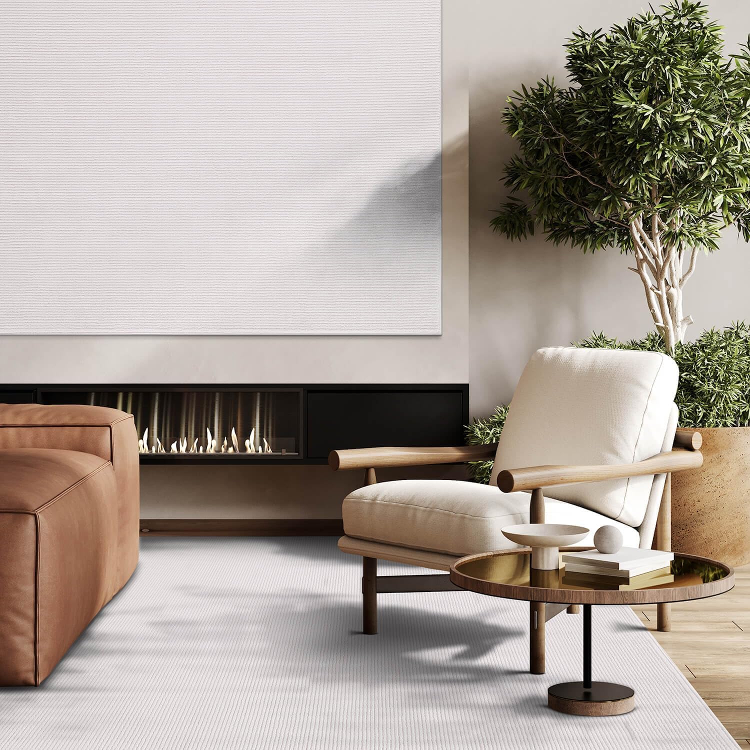 Pastoral White/White Woven Non-Slip Indoor Area Rug