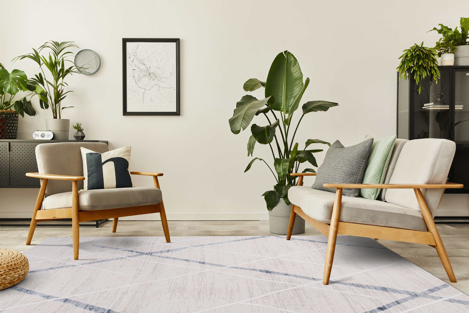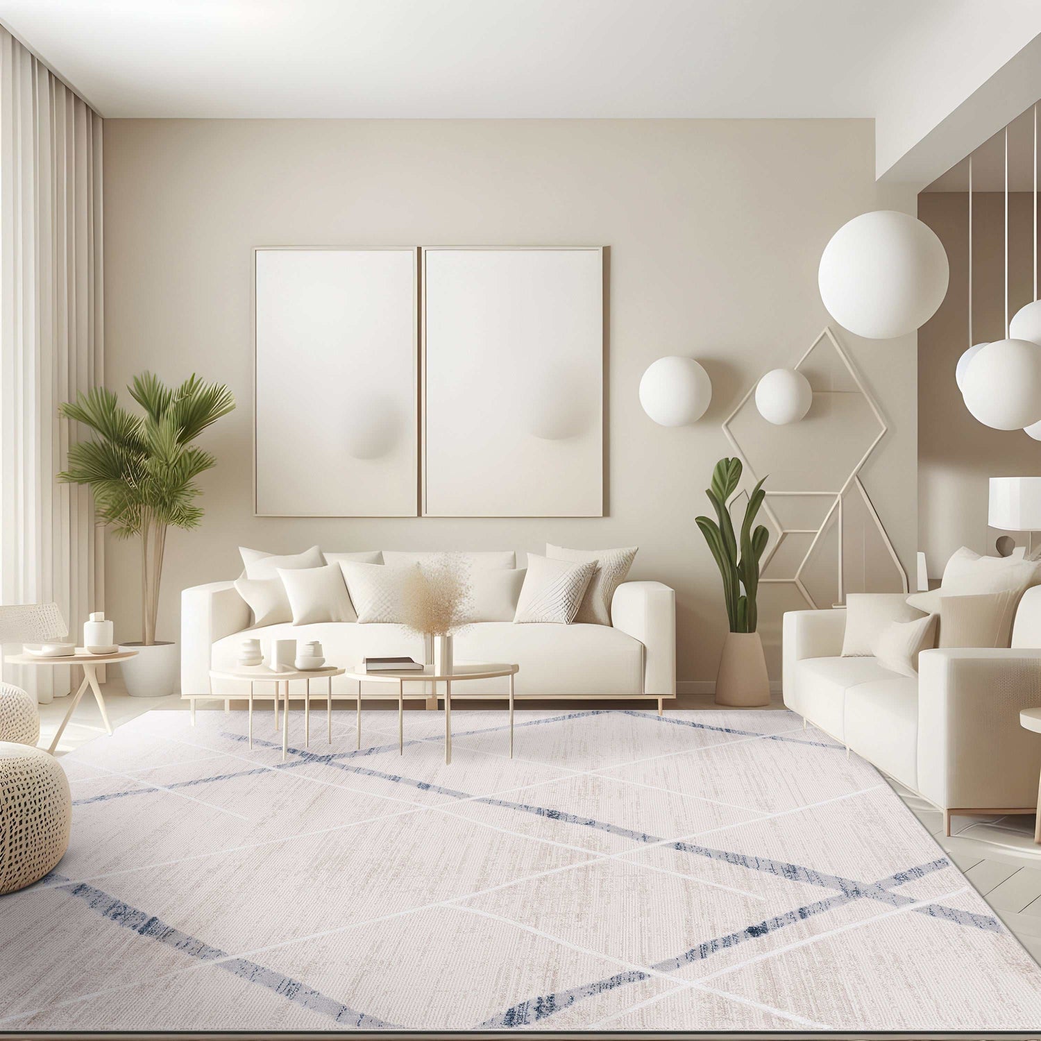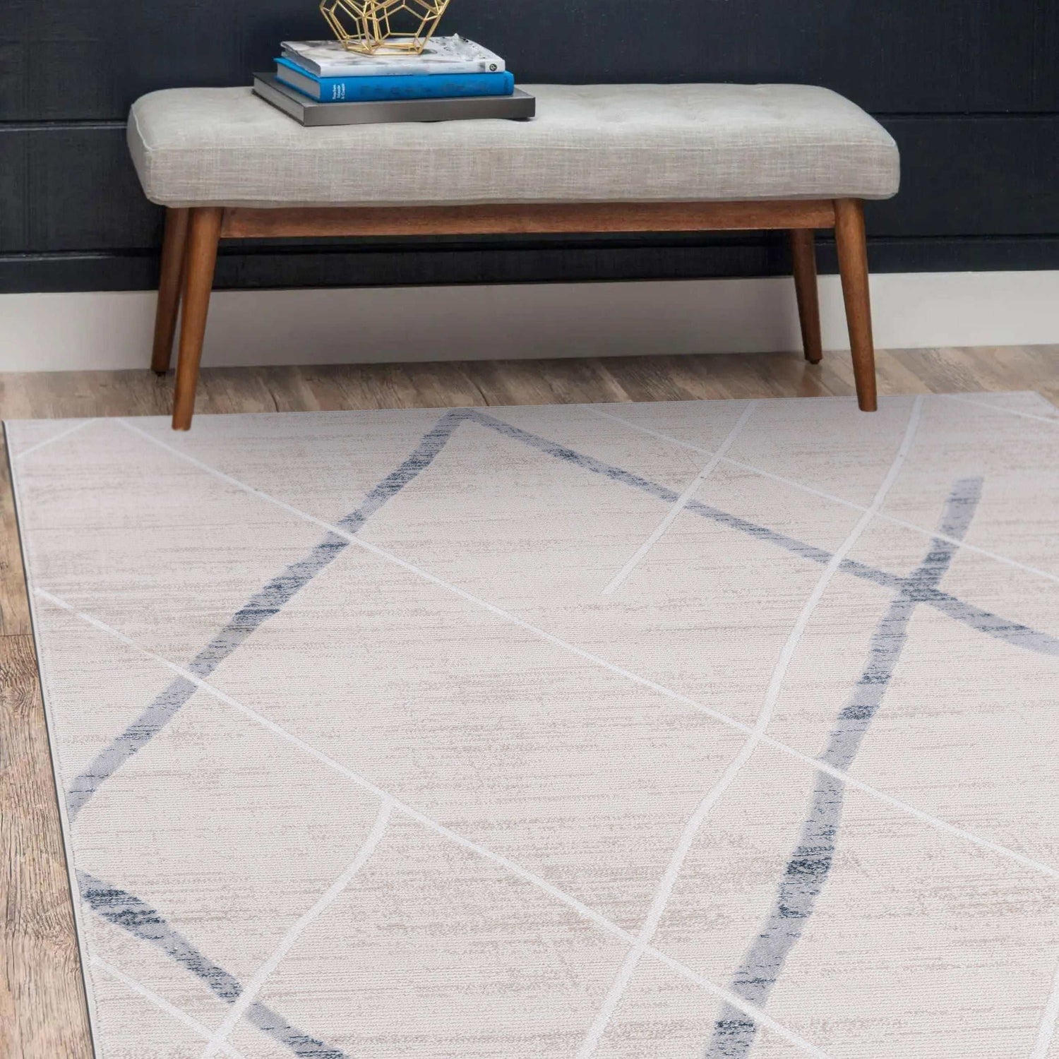 EASY CLEANING: It is made of material resistant to frequent vacuuming and cleaning. You can vacuum with a vacuum cleaner indoors. You can wipe it clean with a slightly damp cloth. Machine-made from stain-resistant and stylish 100% Polyester, this durable area rug is designed for minimal, comfort and style. With a low pile height, this floor rug offers comfort without being too bulky for your pets, cats, dogs, guests, and children.