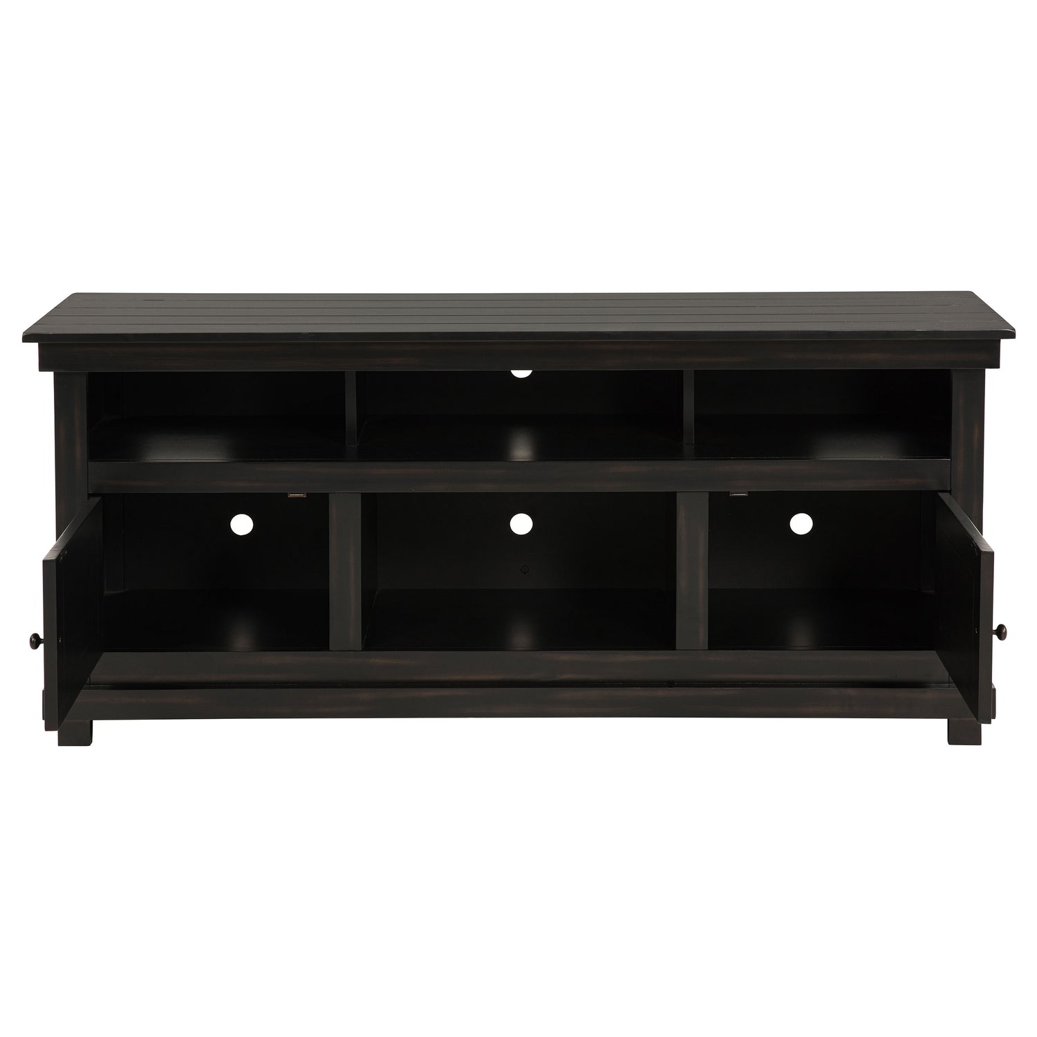 - Includes: One (1) TV stand- Roughhewn wood markings add artisan character to a modern farmhouse TV stand