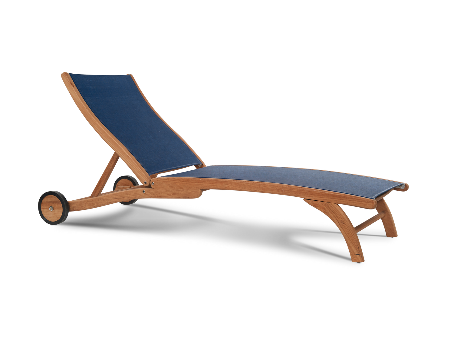 Pearl Teak Blue Outdoor Reclining Sunlounger with Rear Wheels