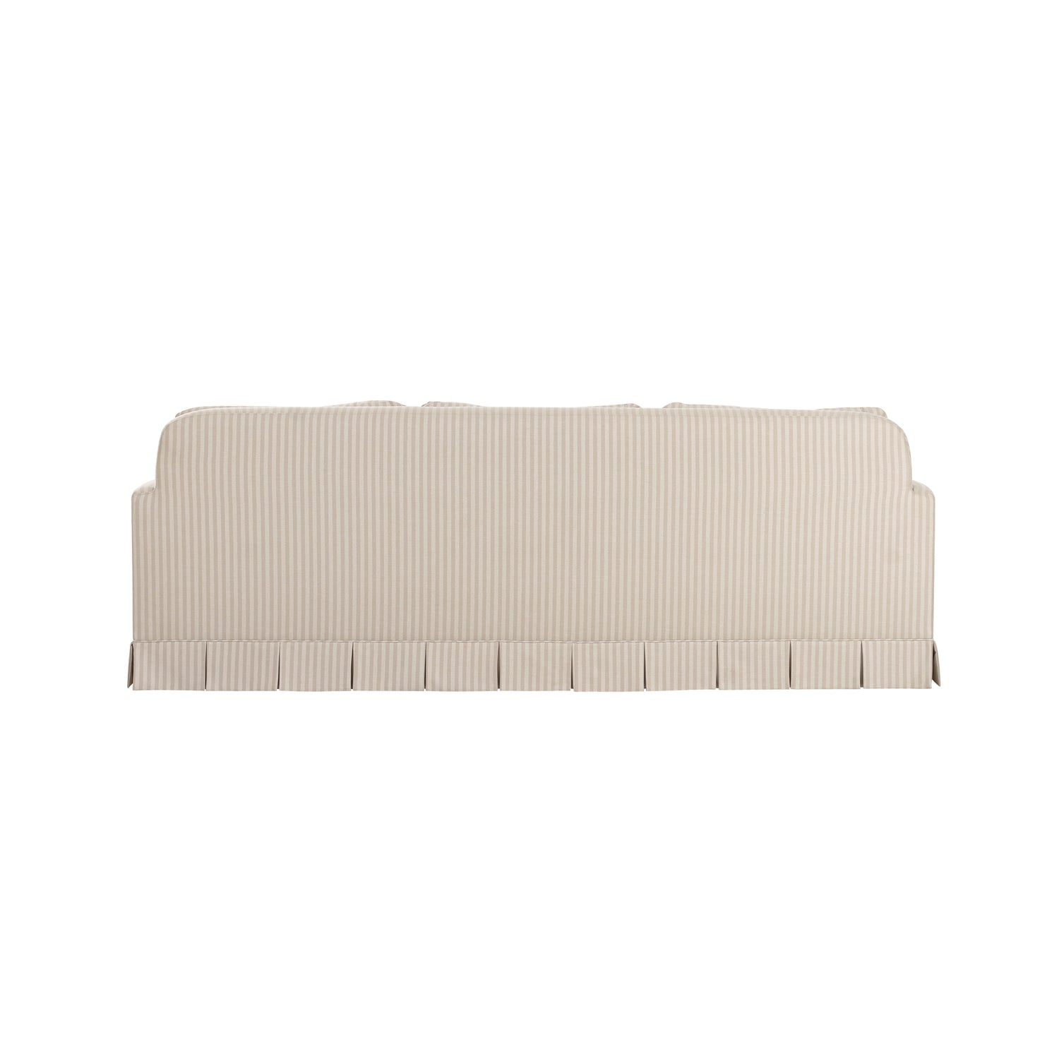 - Box pleat skirt detail, minimal track arm. Back features soft rounded corners