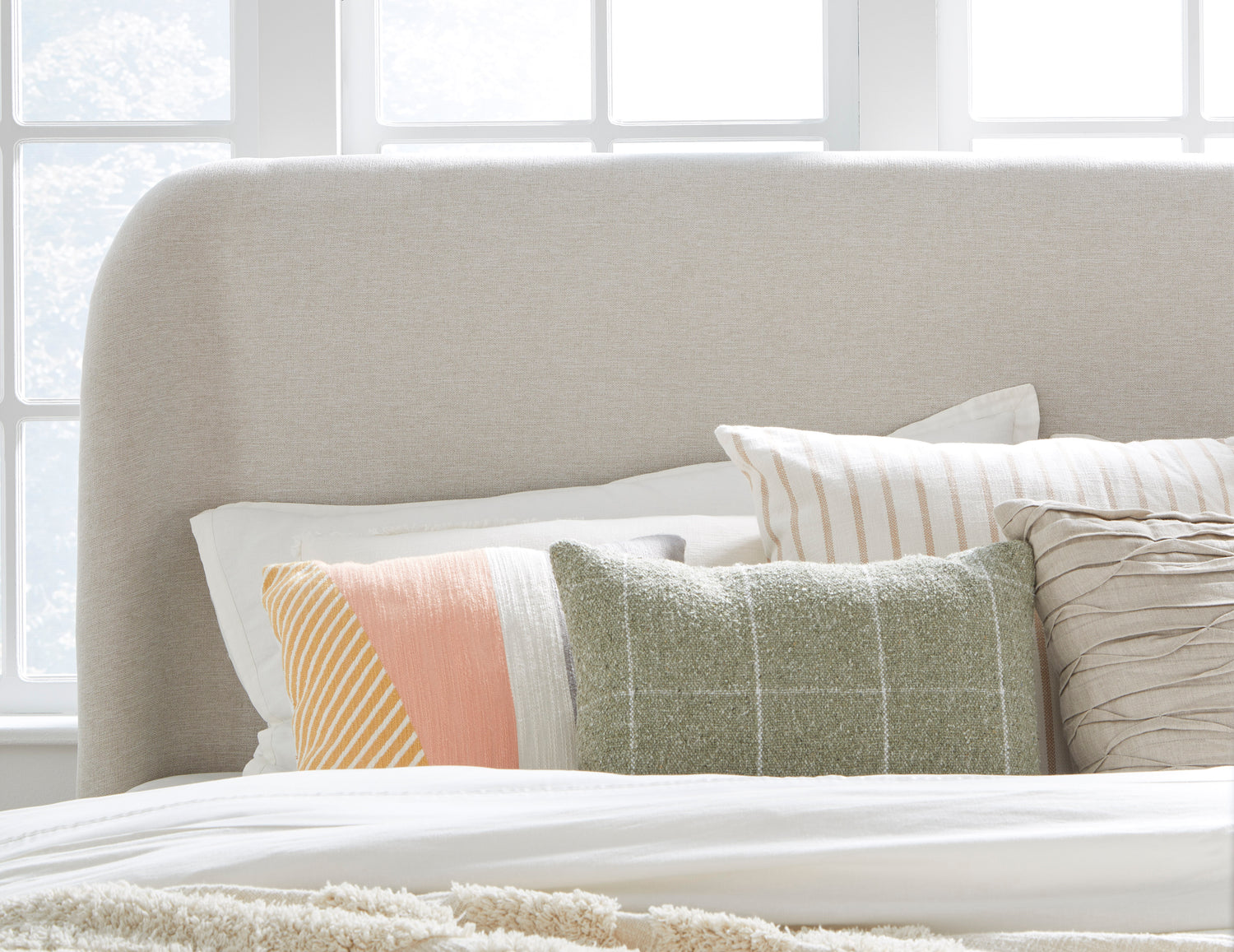 - Subtly curved headboard creates a relaxed, enveloping feel