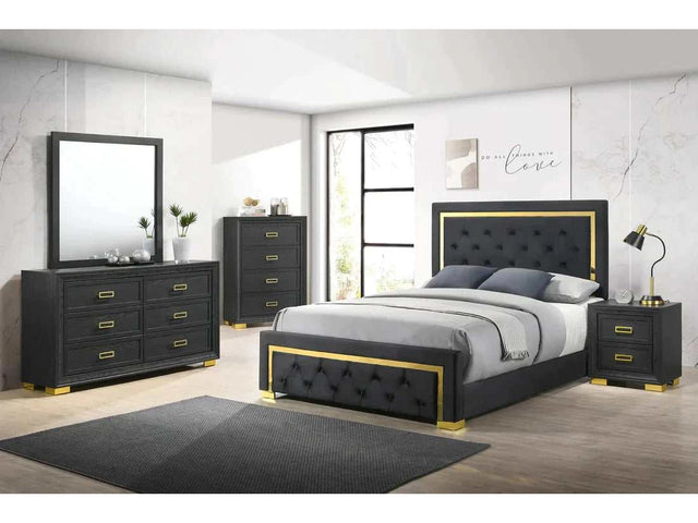 Pepe Black & Gold Upholstered Panel Bedroom Sets