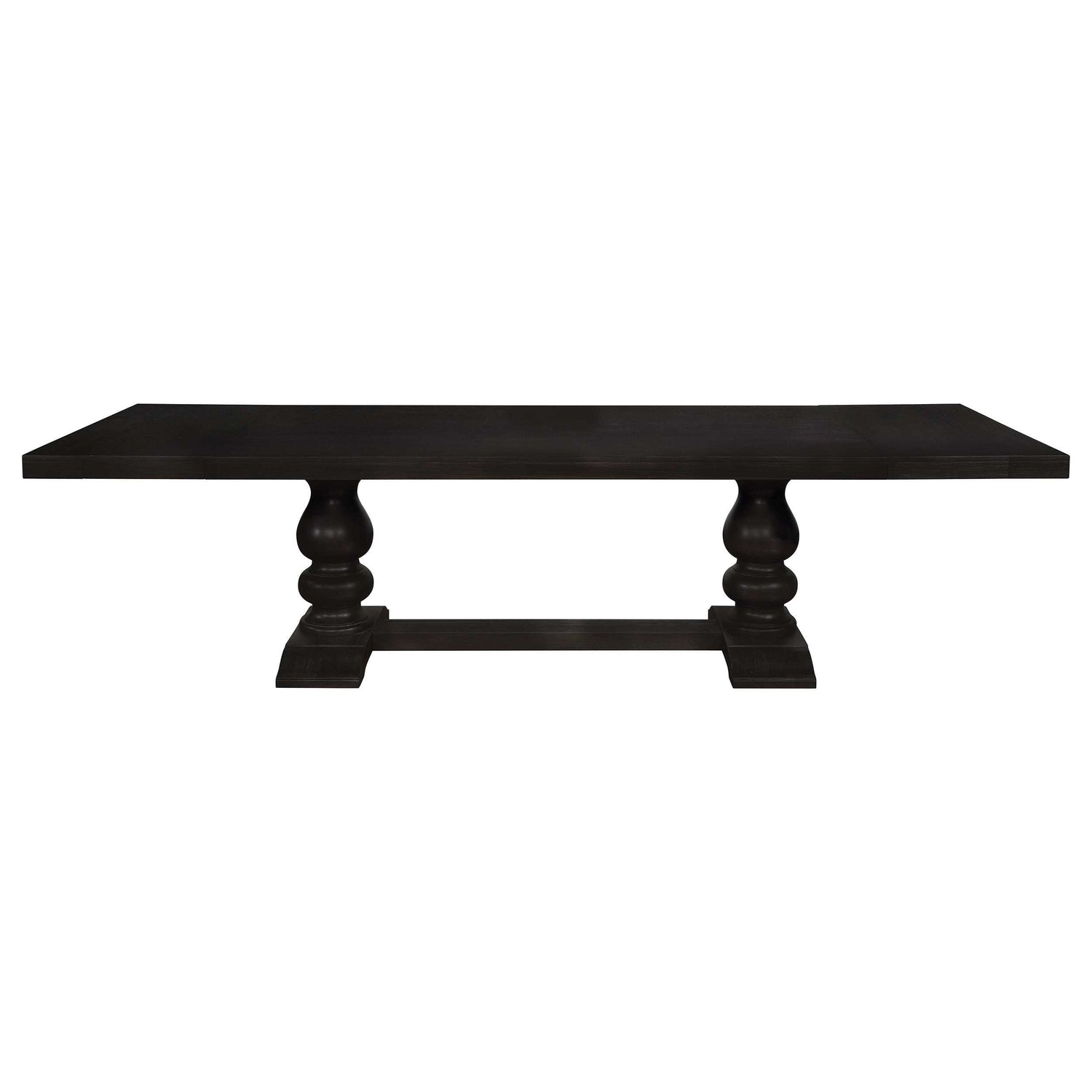 Curvaceous double pedestals form the base of this substantial hardwood table