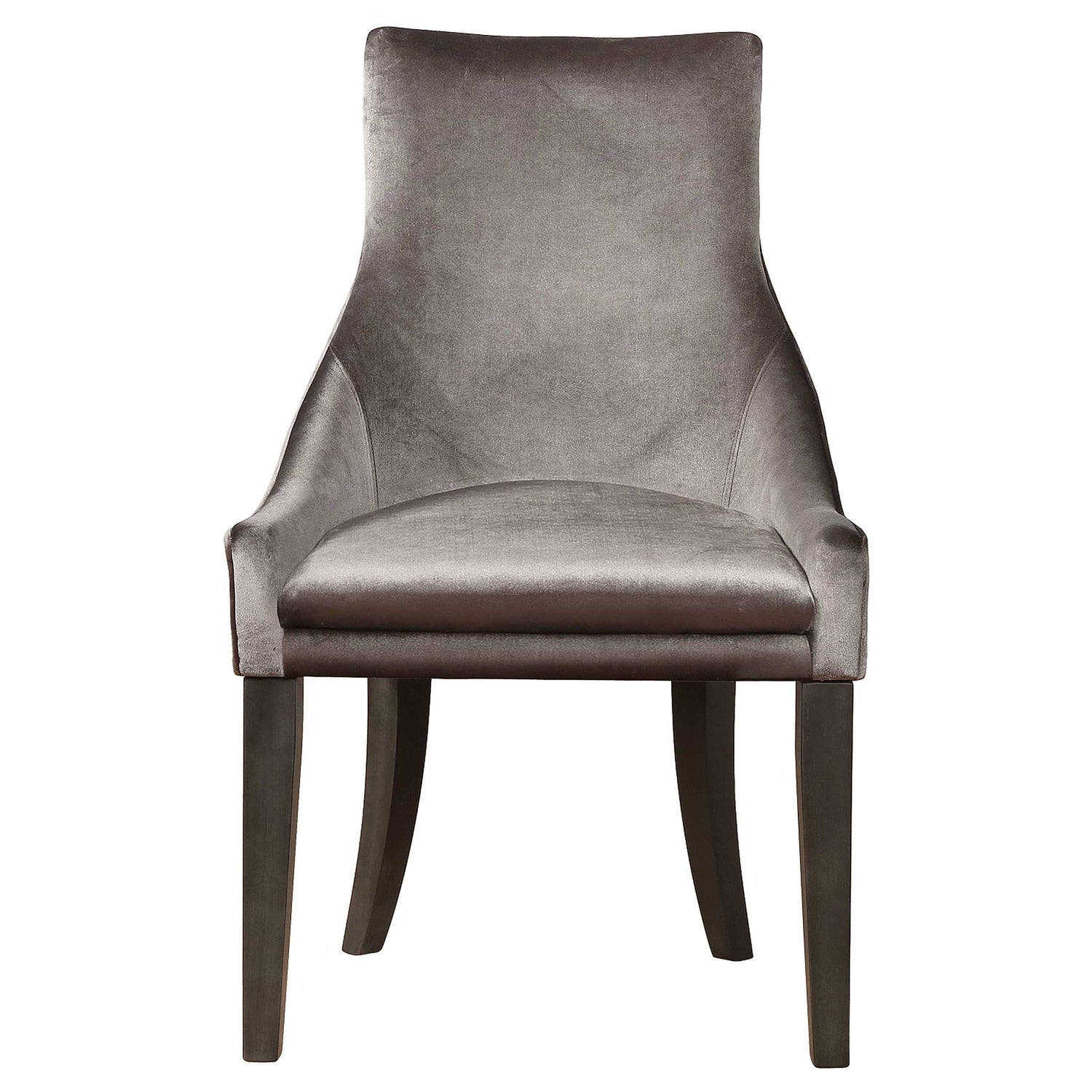 Sleek upholstered chairs are offered in grey velvet (dining chair #121715 not available)