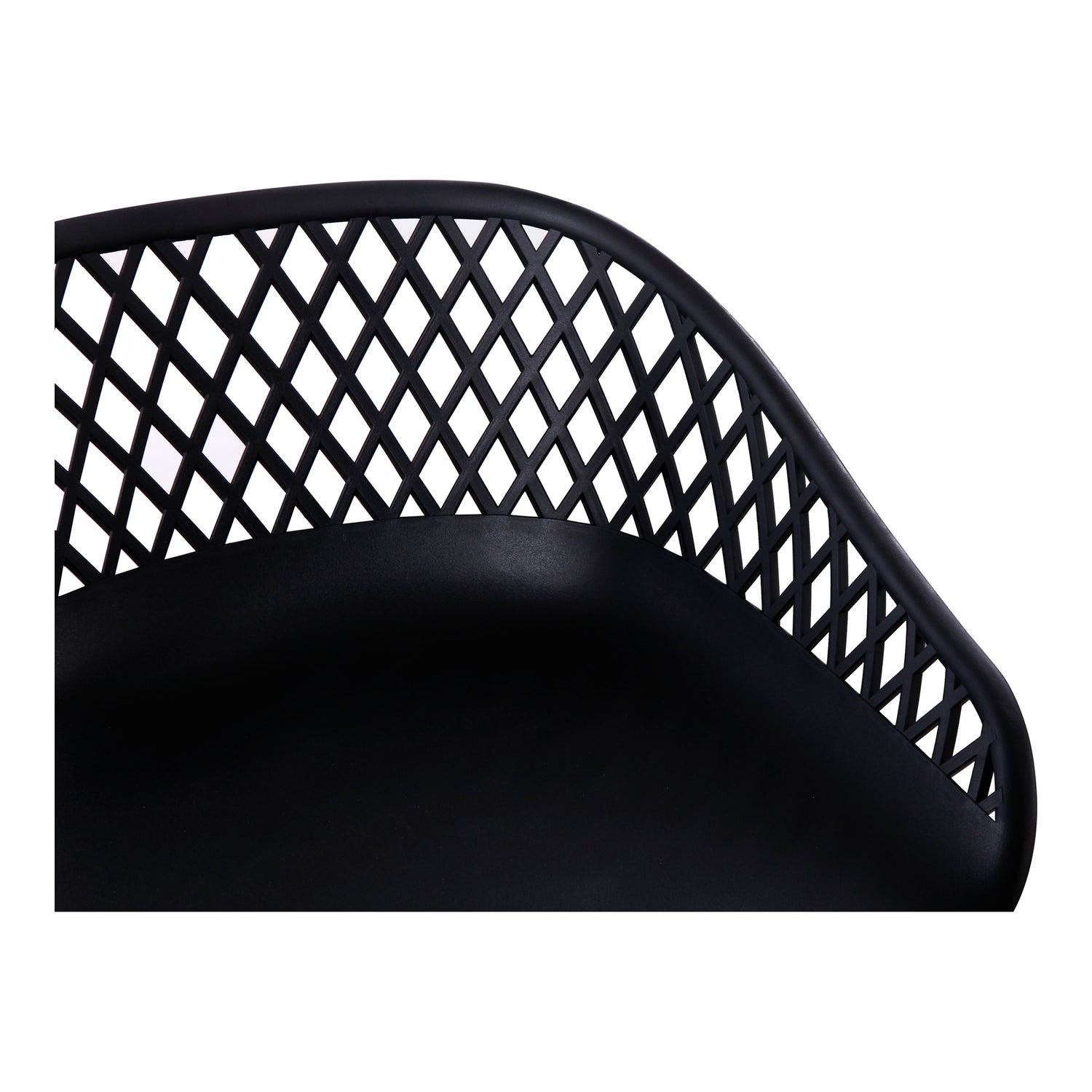 The Piazza Black Outdoor Barstool (Set of 2) is a barstool set constructed from durable polypropylene and powder coated metal that provides comfortable seating for your space. These stools feature a whicker backing and powder coated metal legs, making them suitable for both indoor and outdoor use. They complement any outdoor design with a modern touch.