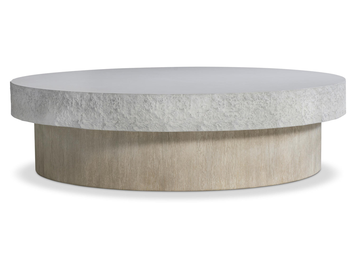 - Wirebrushed oak base in Trevin finish, supporting smooth faux stone smooth top and textured edges in Millstone finish