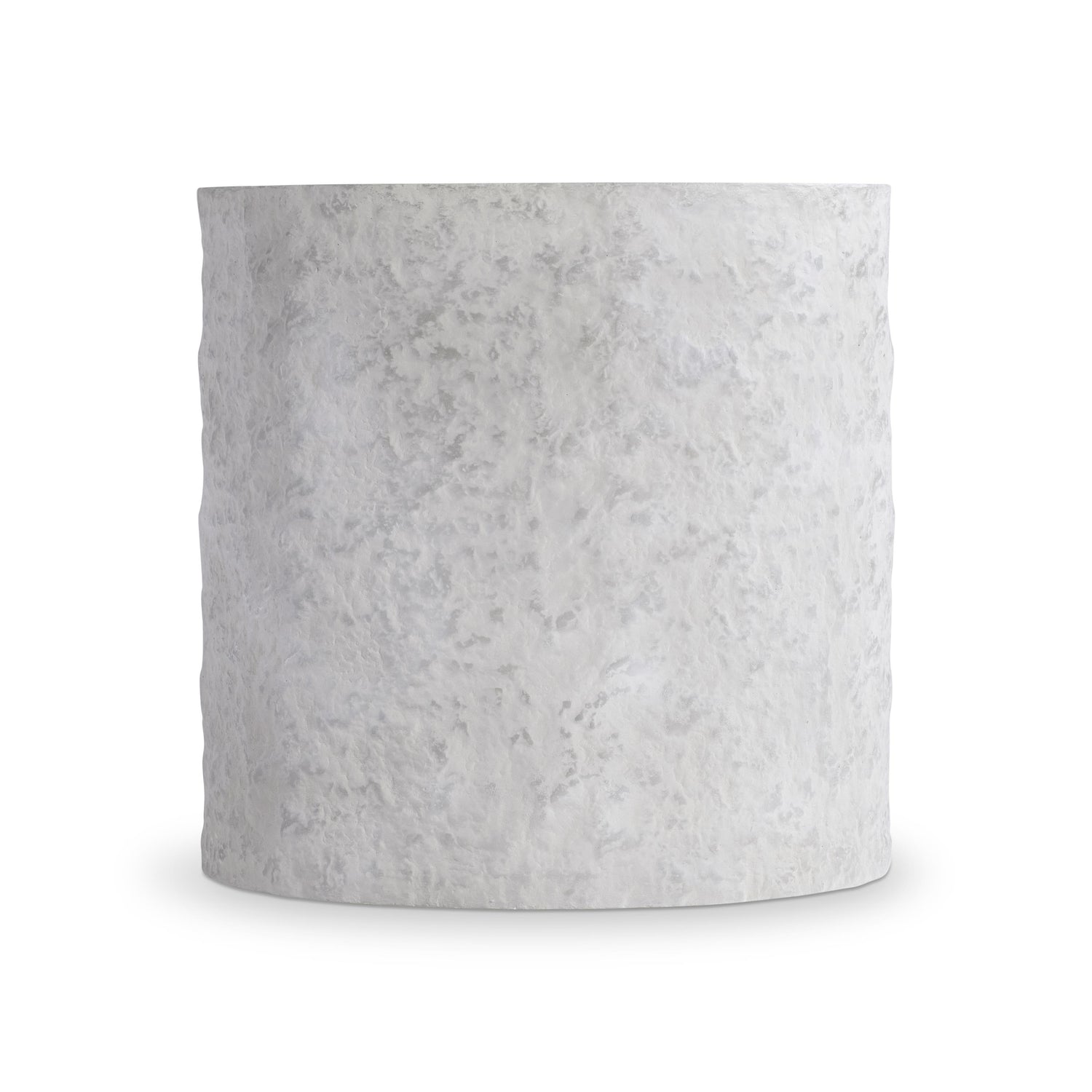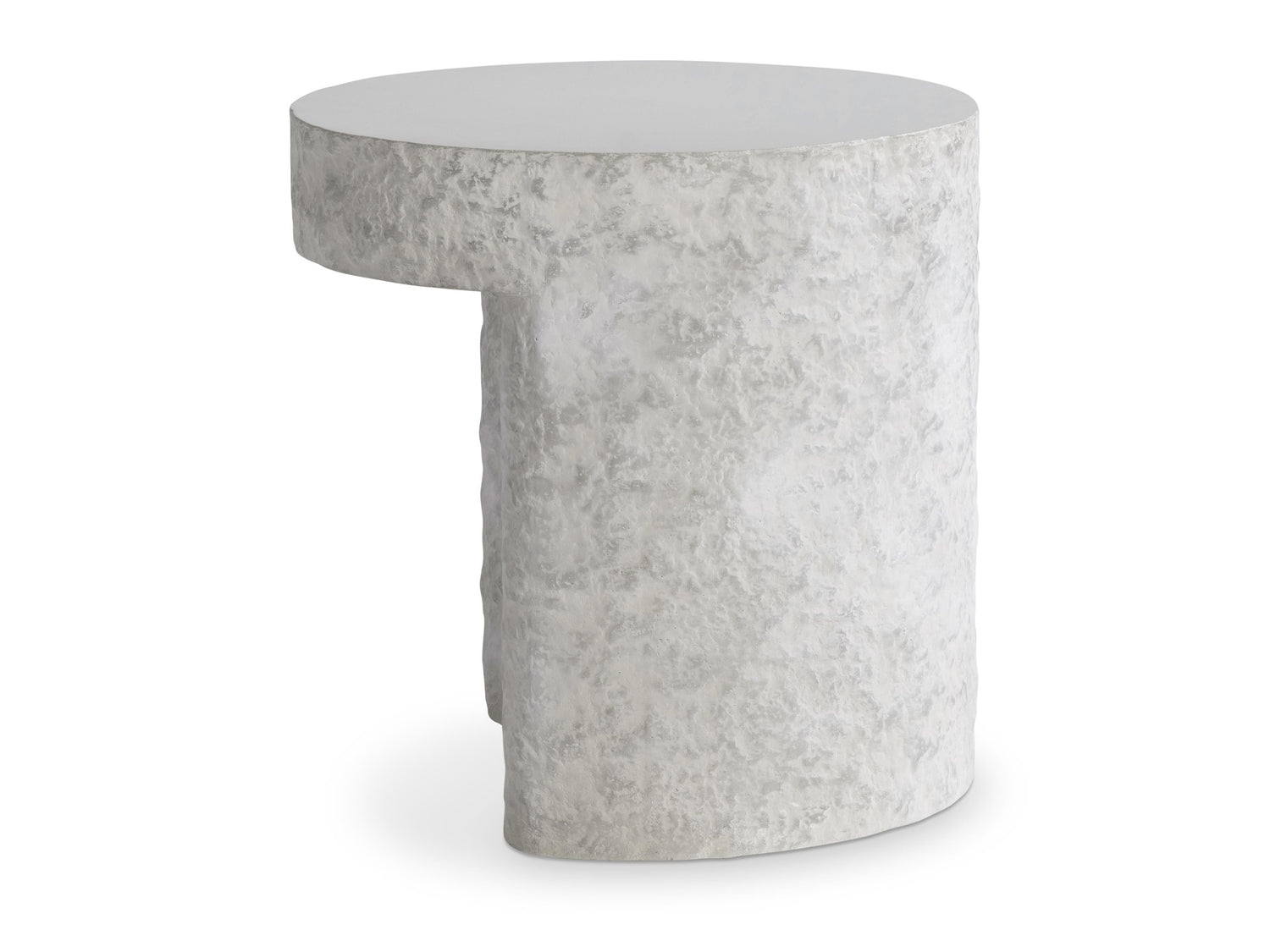 The Pincio side table takes a geometric form and gives it a modern organic update. The table offers a sculptural base with a smooth top. The textured sides showcases a faux stone look in the Millstone finish.