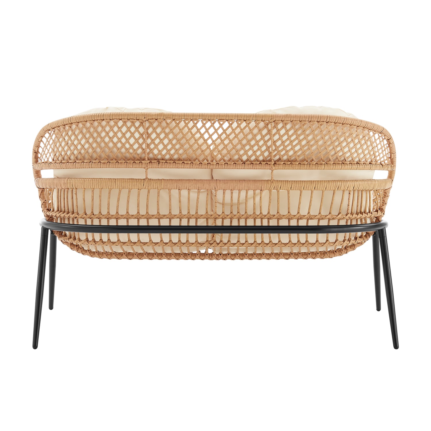 - Frame Made of Rust Resistant Steel Wrapped in PE Rattan Rope Perfect for Outdoor Weather.