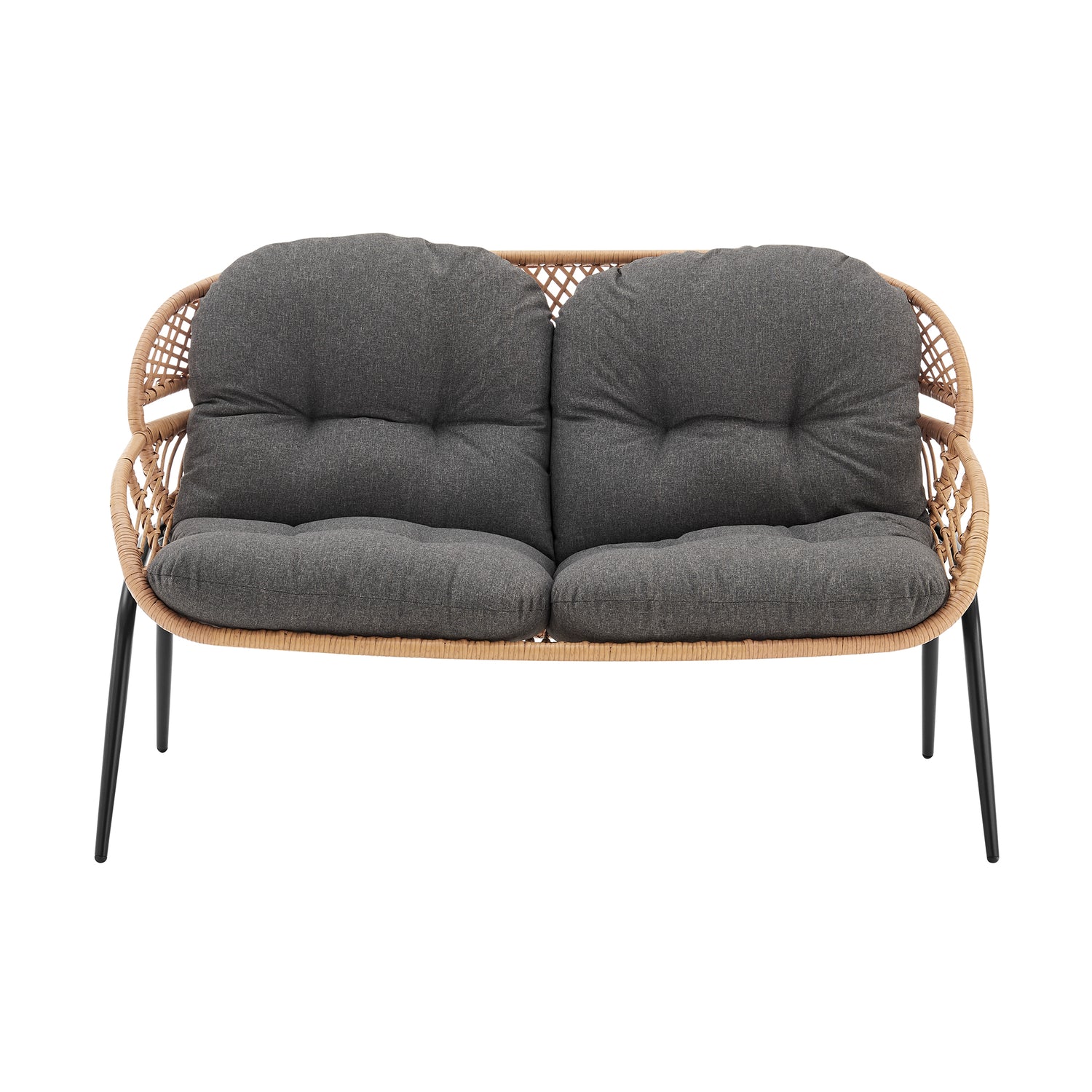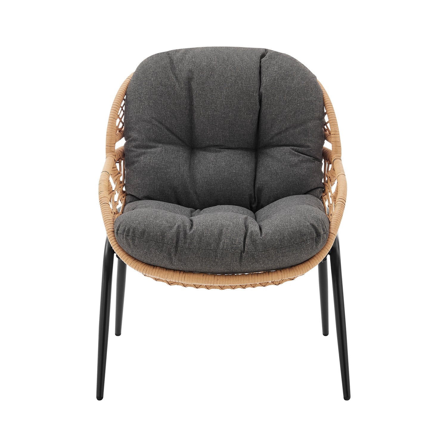 - Frame Made of Rust Resistant Steel Wrapped in PE Rattan Rope Perfect for Outdoor Weather.