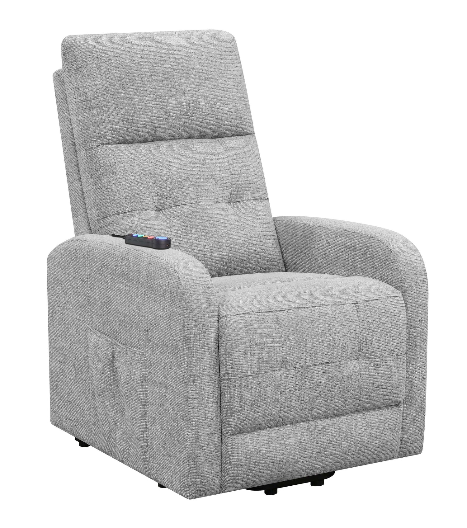Easily stand on your feet with the assistance of this power lift chair. With an integrated heat and massage function, you're bound to always feel your best. This piece is upholstered in soft performance fabric with cool gel memory foam cushioning. Two convenient storage pockets are attached to the frame to keep the remote close by. Charge your smart devices with the built-in USB ports within close reach.
