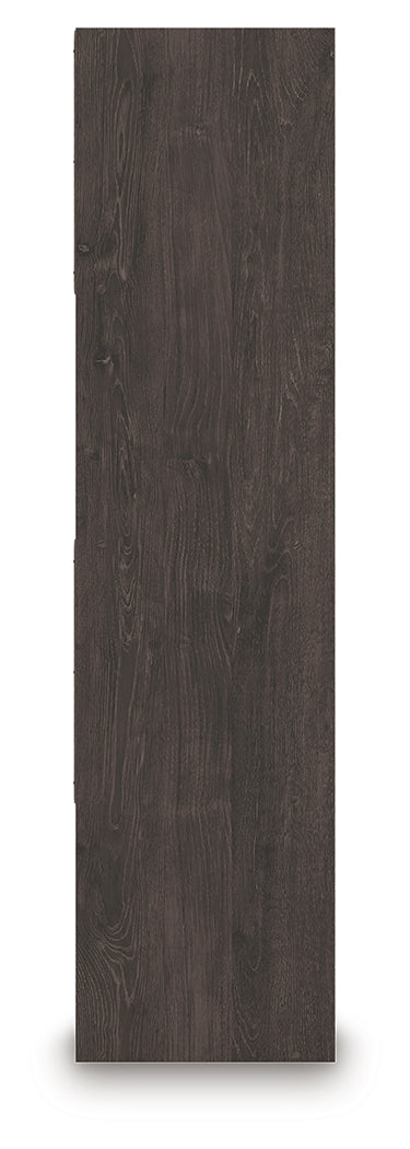 - Dark charcoal finish over replicated oak grain with authentic touch