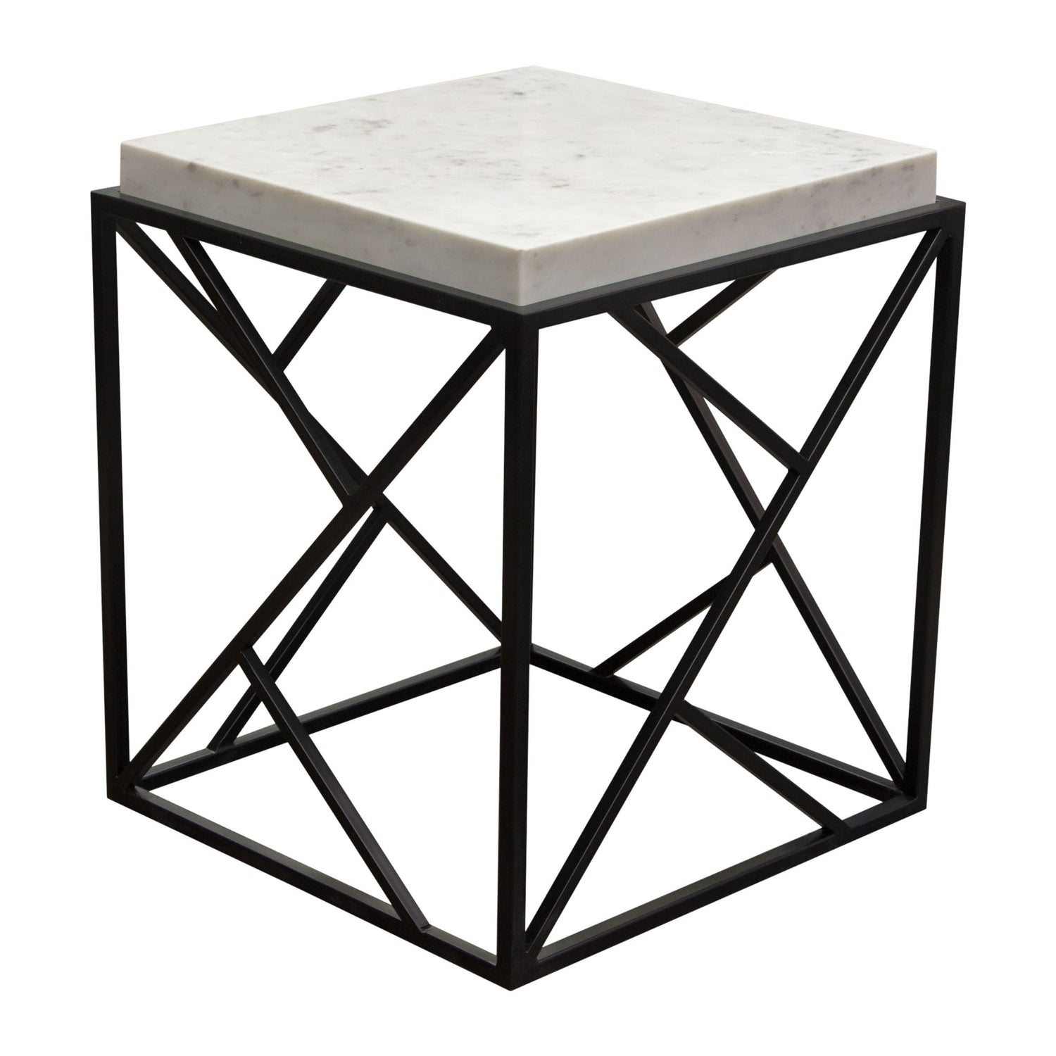 - With its random geometric patterned black powder coated iron base topped with a Genuine White Marble Slab Top, the Plymouth Accent Table Collection is sure to impress and elevate the design aesthetic of its surroundings.