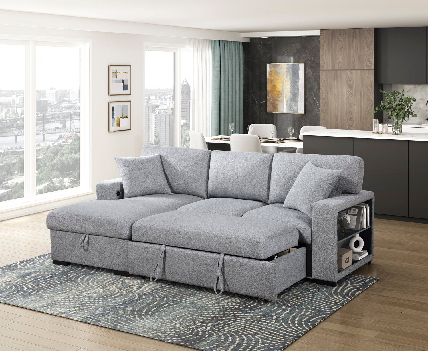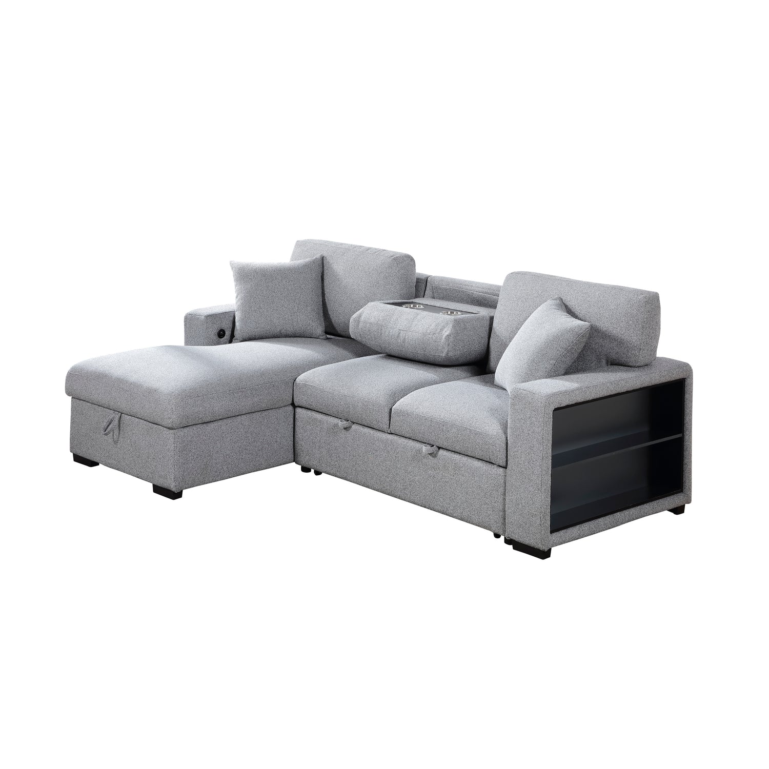 Pompano Sleeper Sectional with Left Chaise, Pull-out Bed and Hidden Storage, Charging Ports