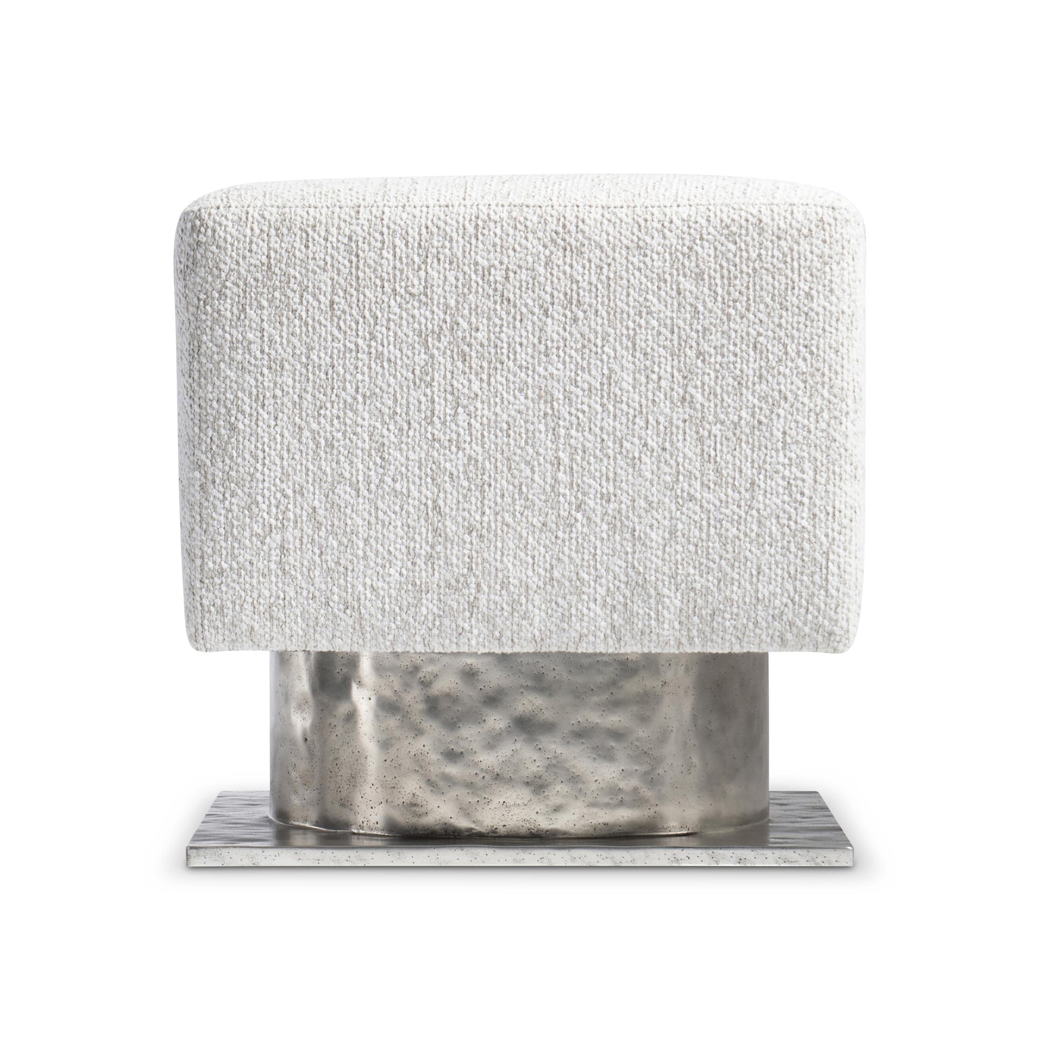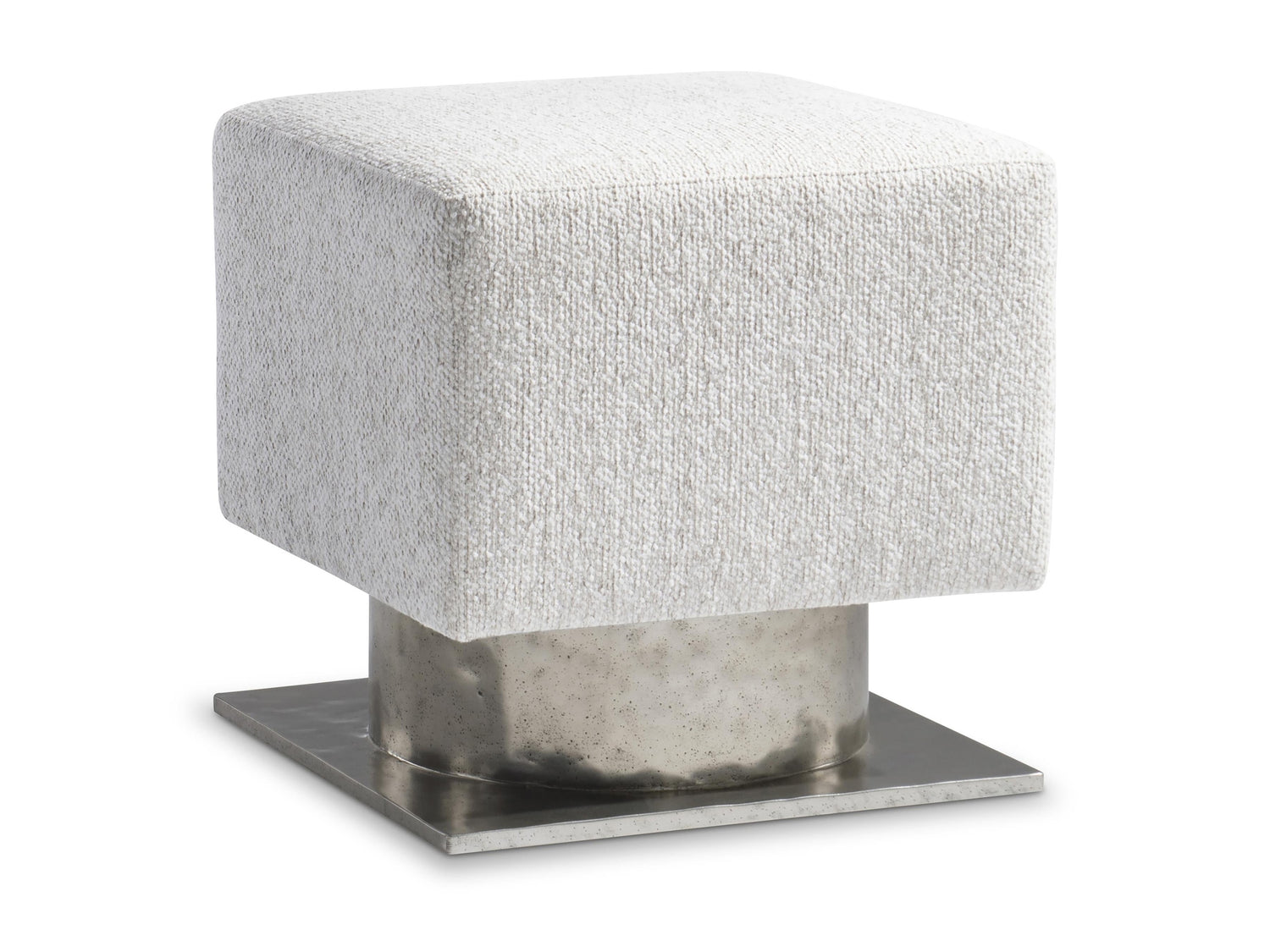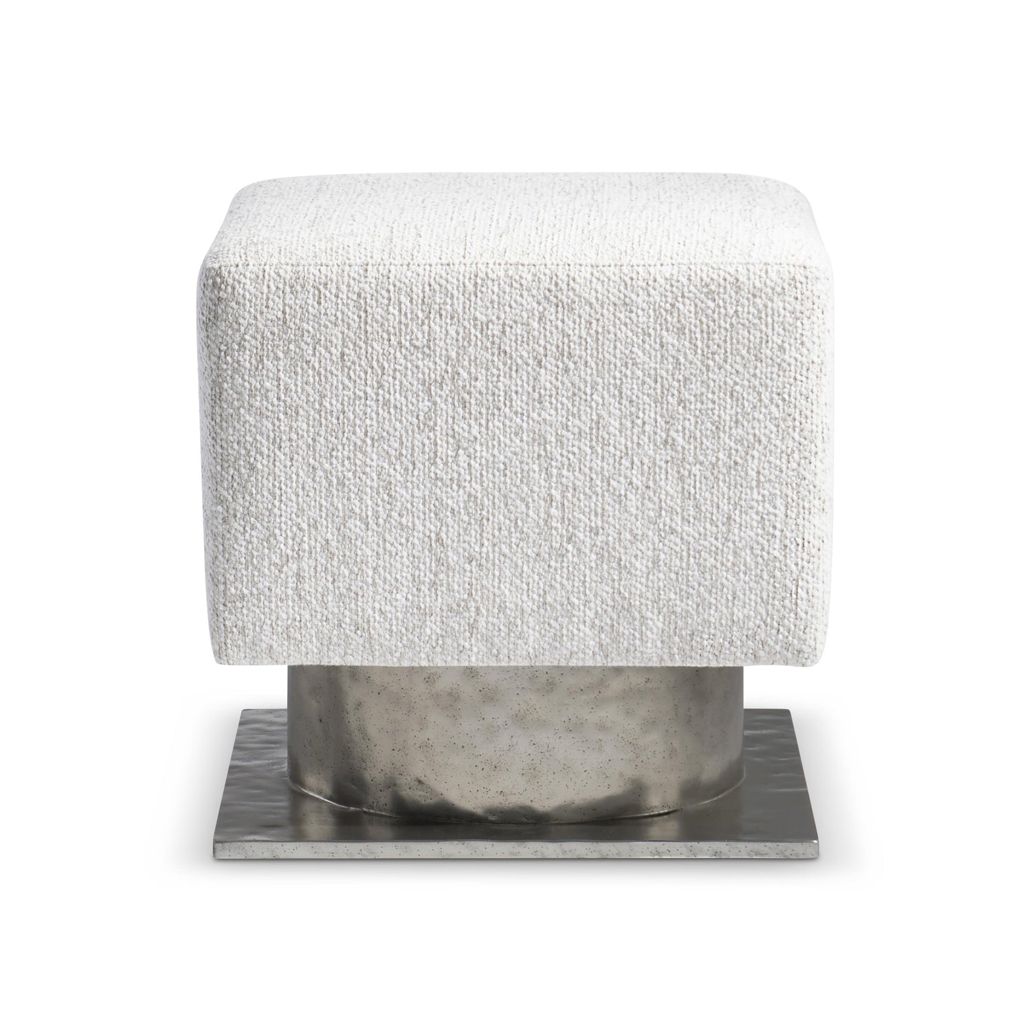 - Square upholstered top and sides atop a round, textured cast aluminum pedestal and square base in Bright Graphite finish