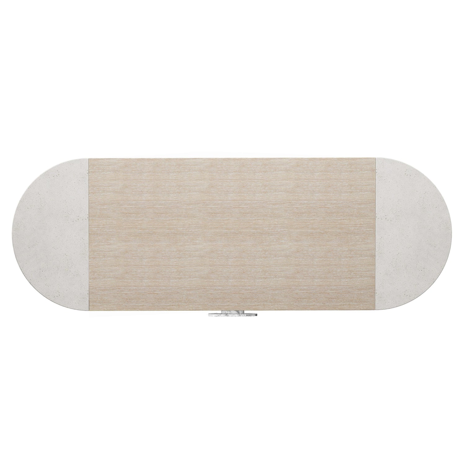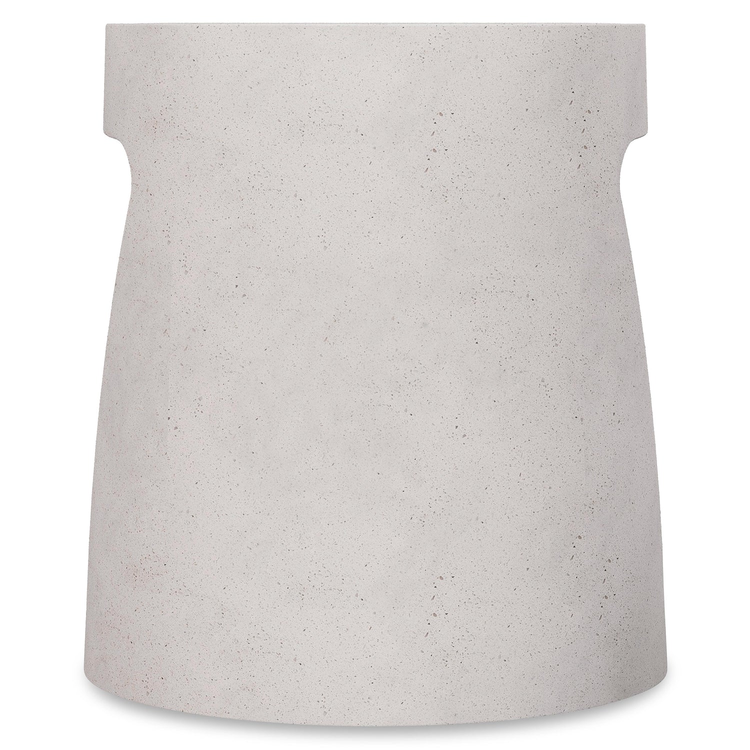 - Wood-veneered desk drawer box in Tawny finish with curved, angled cast glass-reinforced concrete support ends in Buff finish