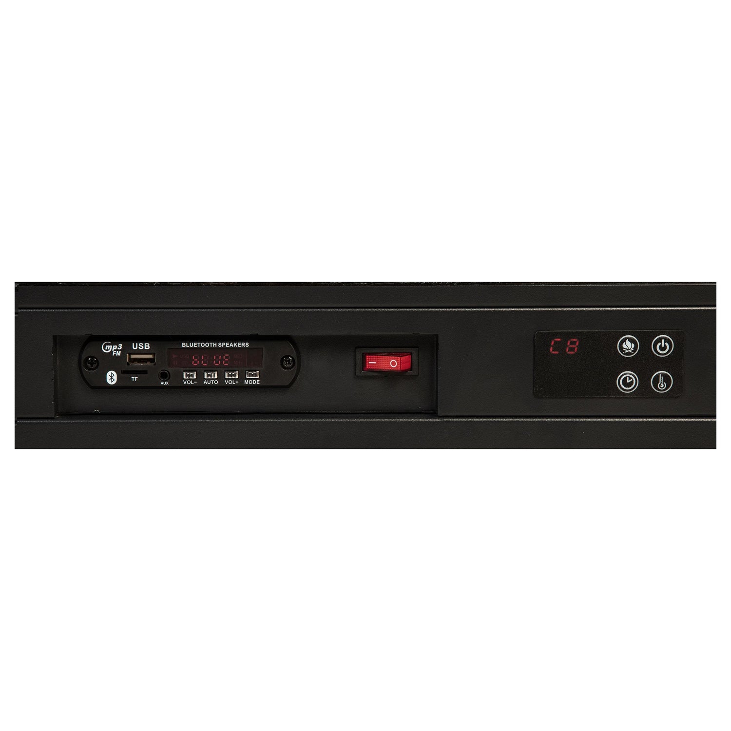 - Footboard includes a visual flame box insert with 13 customizable colors