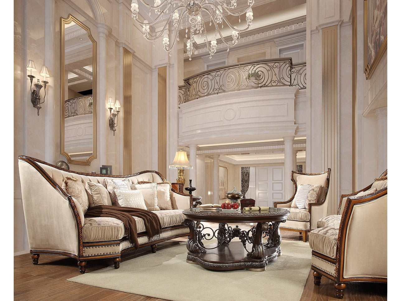 This 3PC Sofa Set introduces the timeless charm of Classic European designs, elevating the elegance of your home’s interior. It features Rich European Luxury Fabric upholstery with wood trim all around in a golden finish and stylish accent pillows. Lavish and breathtaking, this sofa set is beautifully crafted with a combination of chenille fabrics and silky textiles. It’s designed for you to enjoy a relaxing day in the comfort of your home.