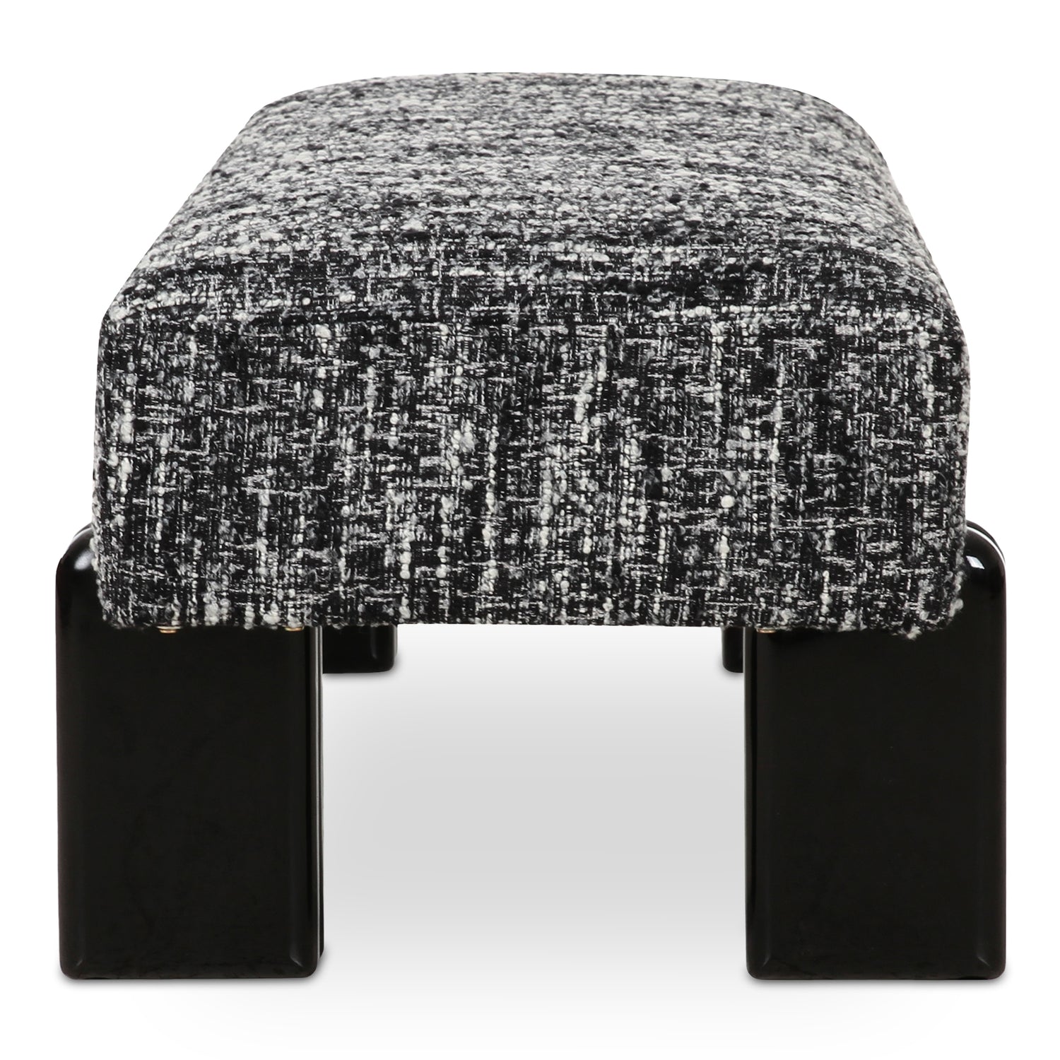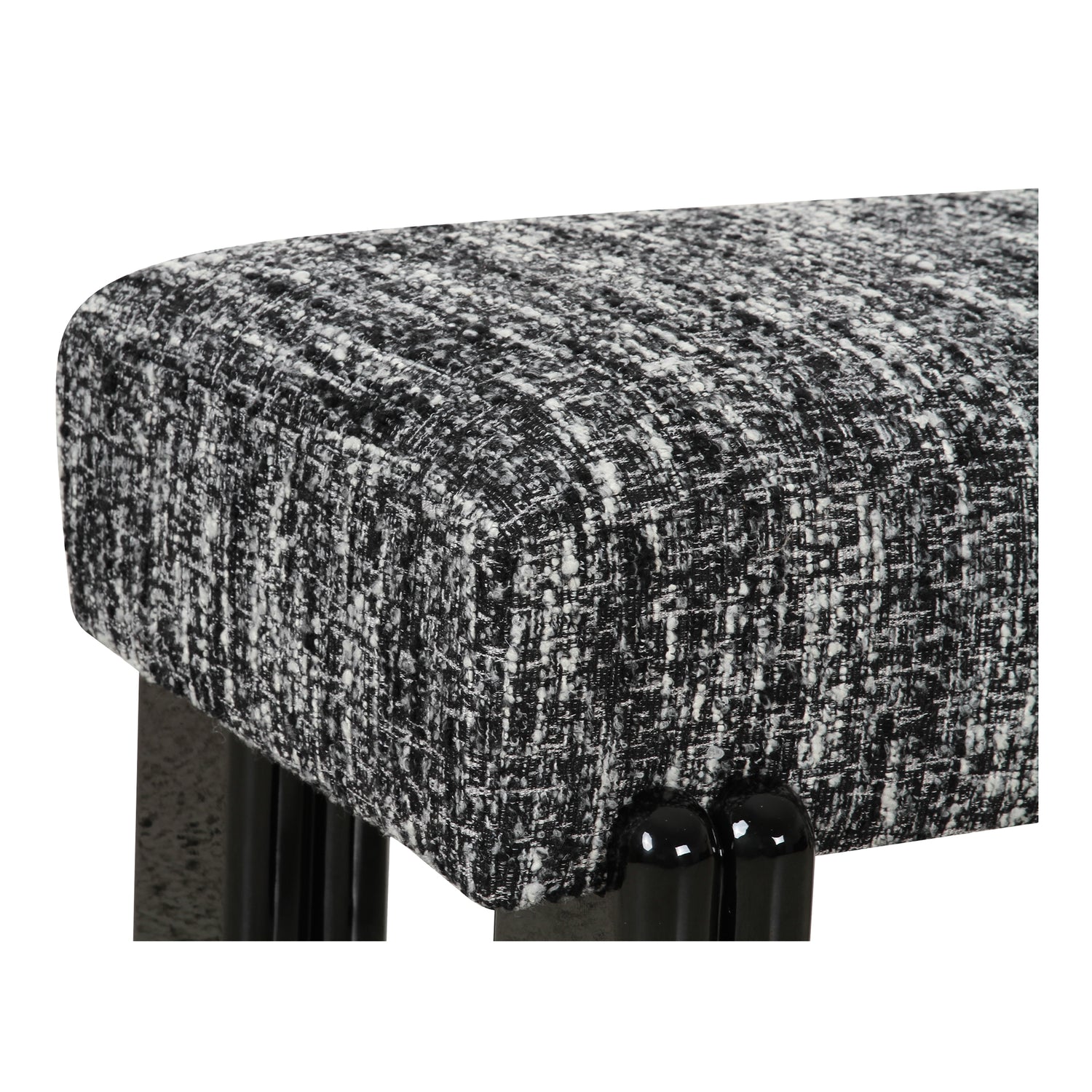 - High gloss finished iron legs with double leg column detailing- 90% upholstery, 10% acrylic pulled boucle textured yarn upholstery