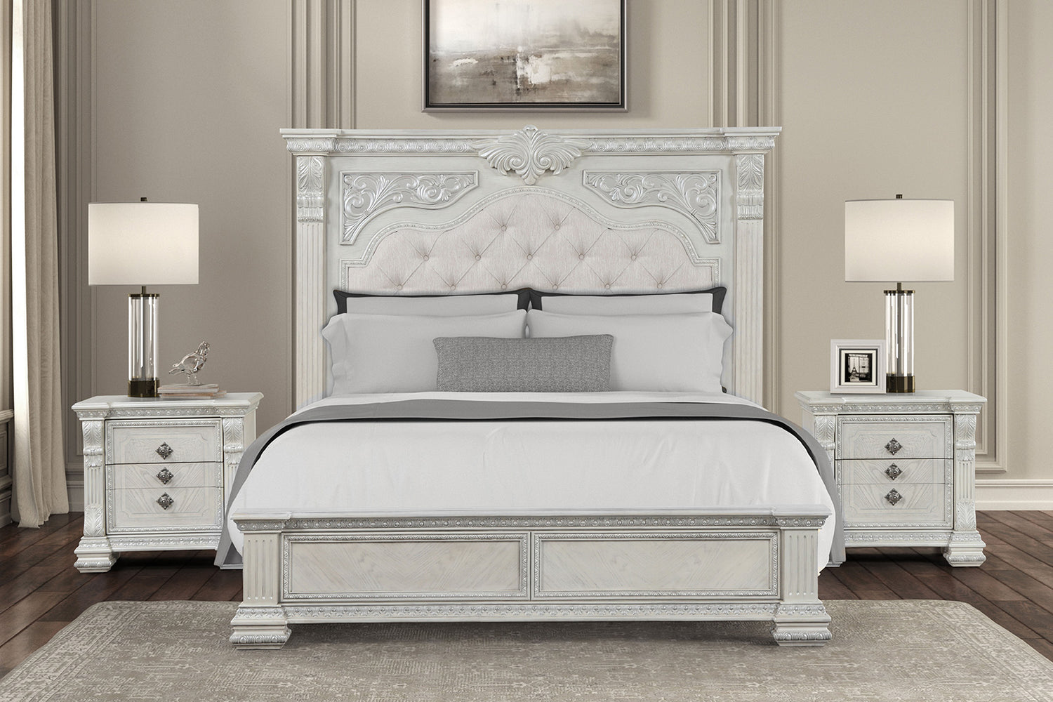 Promenade Wire Brushed White Queen 5 Piece Bedroom Set w/2 Nightstands
