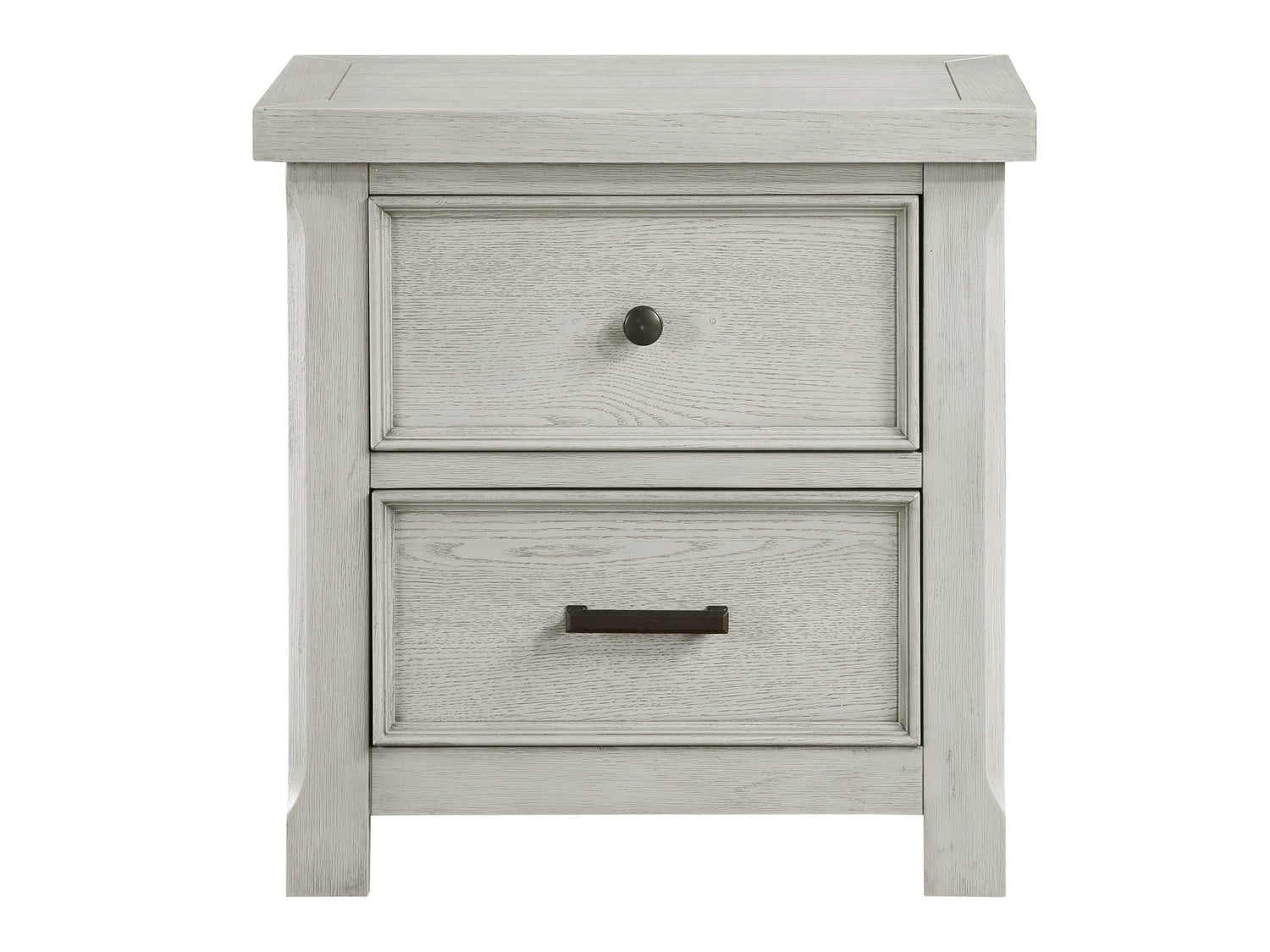 The Providence Collection’s lines and versatile finish create a classic addition for your bedroom. Oak veneer is finished in light gray, serving as a neutral canvas for your personal decorative preferences. The antique black tone metal knob and bar hardware provide complementing contrast to the light finish of the nightstand.