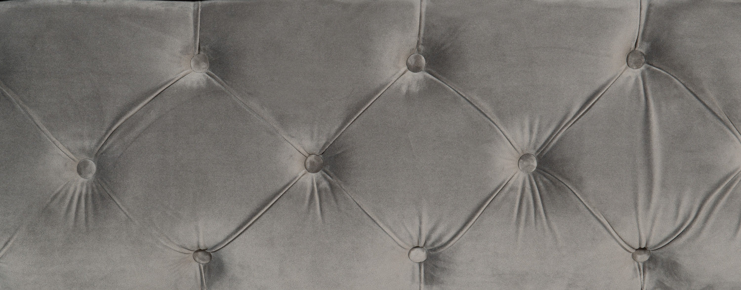 - Button-tufted heaboard and footboard with nailhead trim