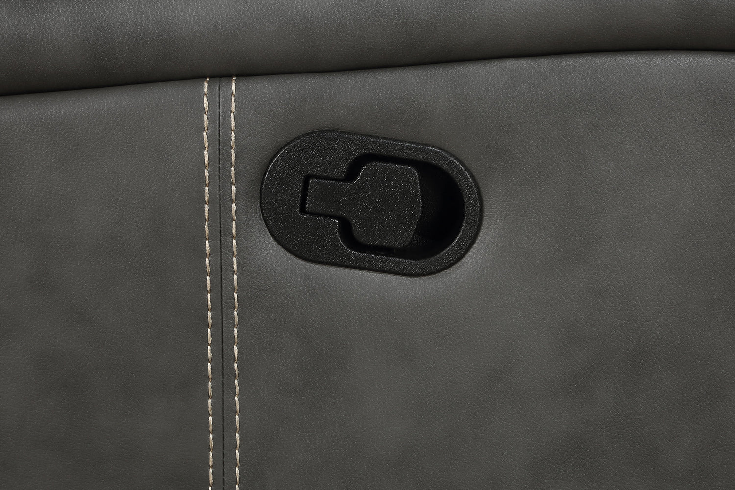 - Trending grey leatherette upholstery with decorative topstitching adds easy