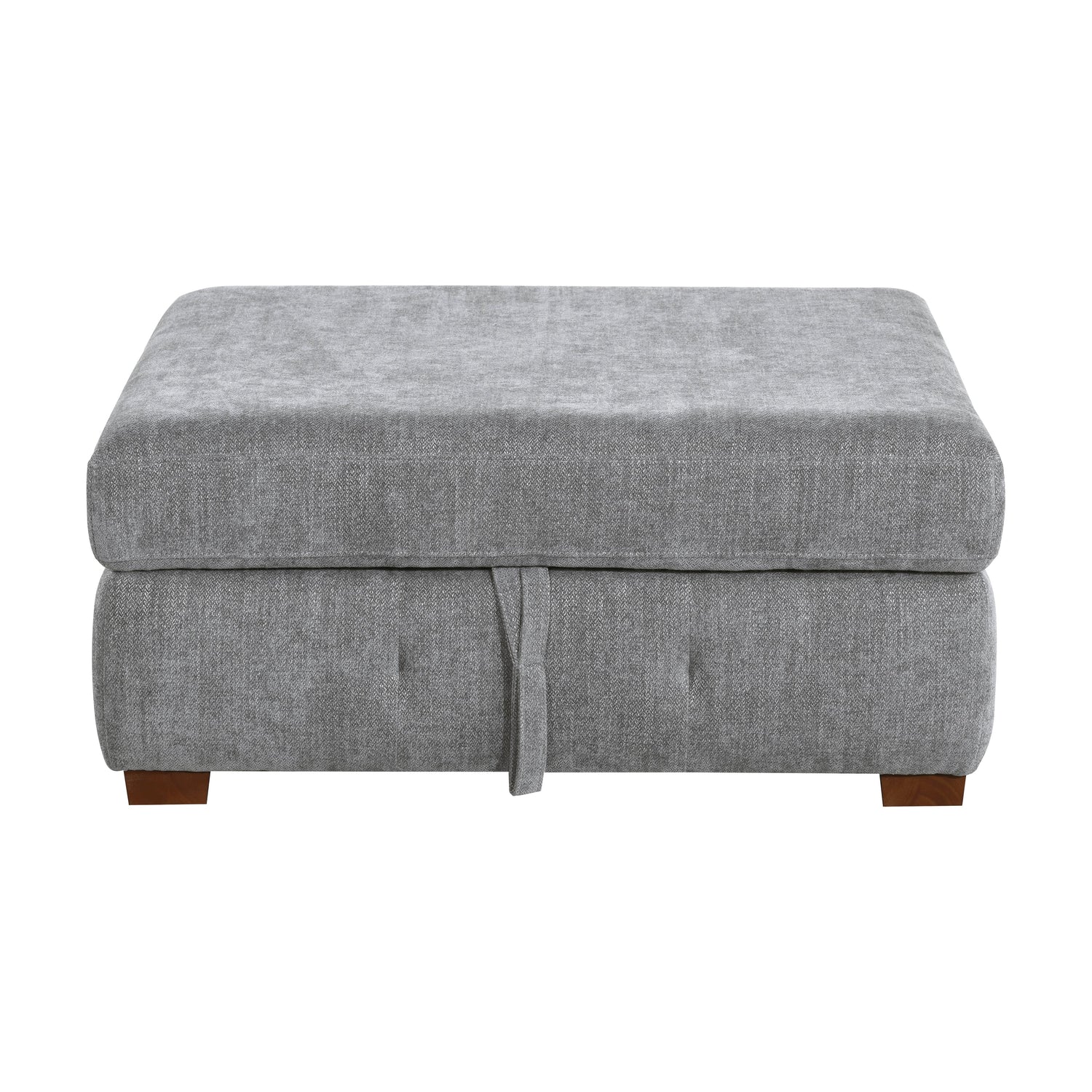 The substantial seating space of the Raife Collection creates a comfortable spot perfect for entertaining or just relaxing. The configuration consists of a left-side chaise which is paired with a right-side two-seater – with pull out bed and one centimeter of memory foam on the seats. The pull-out bed that is stored beneath the right-side two-seat unit, pops up to create ample space for full leg extension. The lift-top seat of the chaise and storage ottoman each opens to reveal hidden storage perfect for blankets and pillows. Gray chenille fabric upholstery covers the seating group.