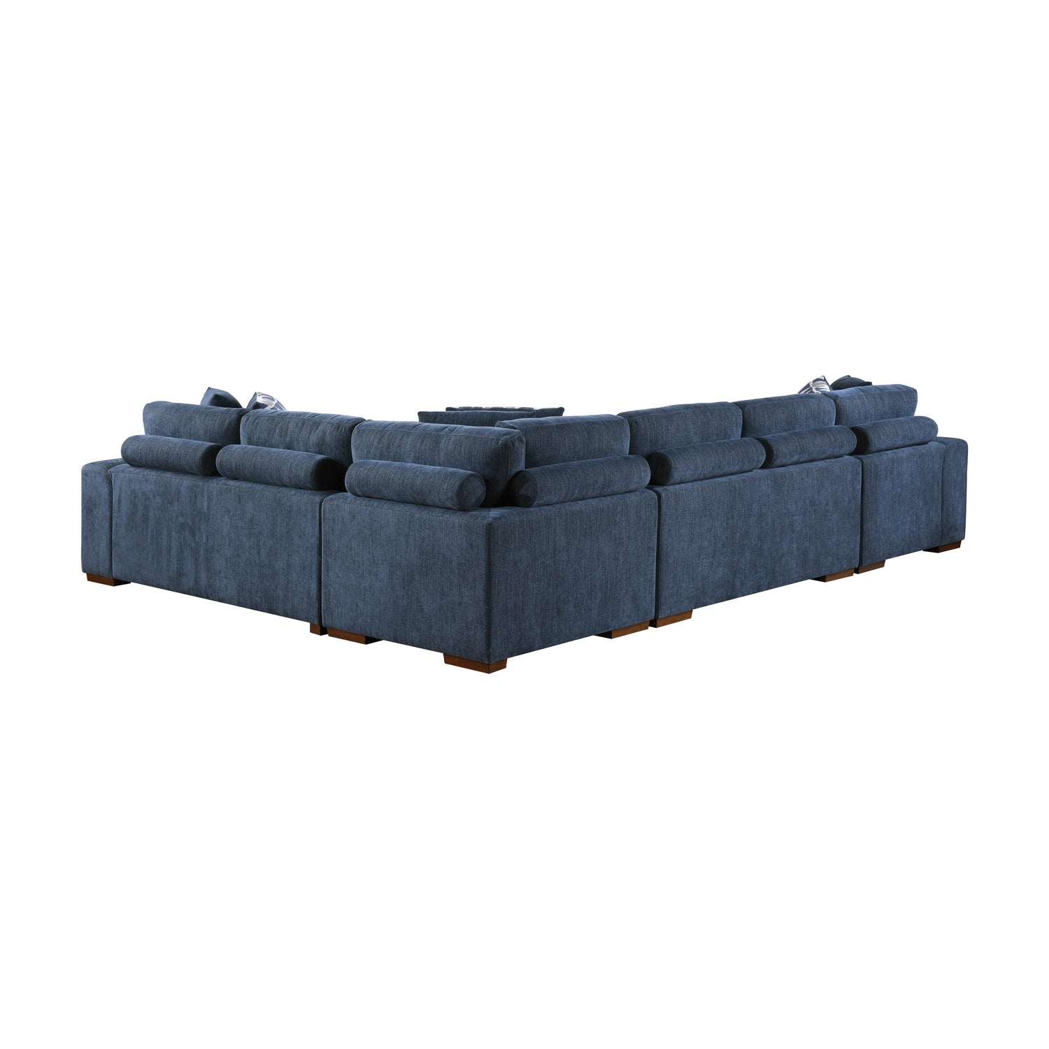 Raife Blue 5-Piece Sectional with Left Chaise And Storage Ottoman