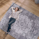 Rain Gray/White Modern Bohemian Non-Slip Indoor Area Rugs