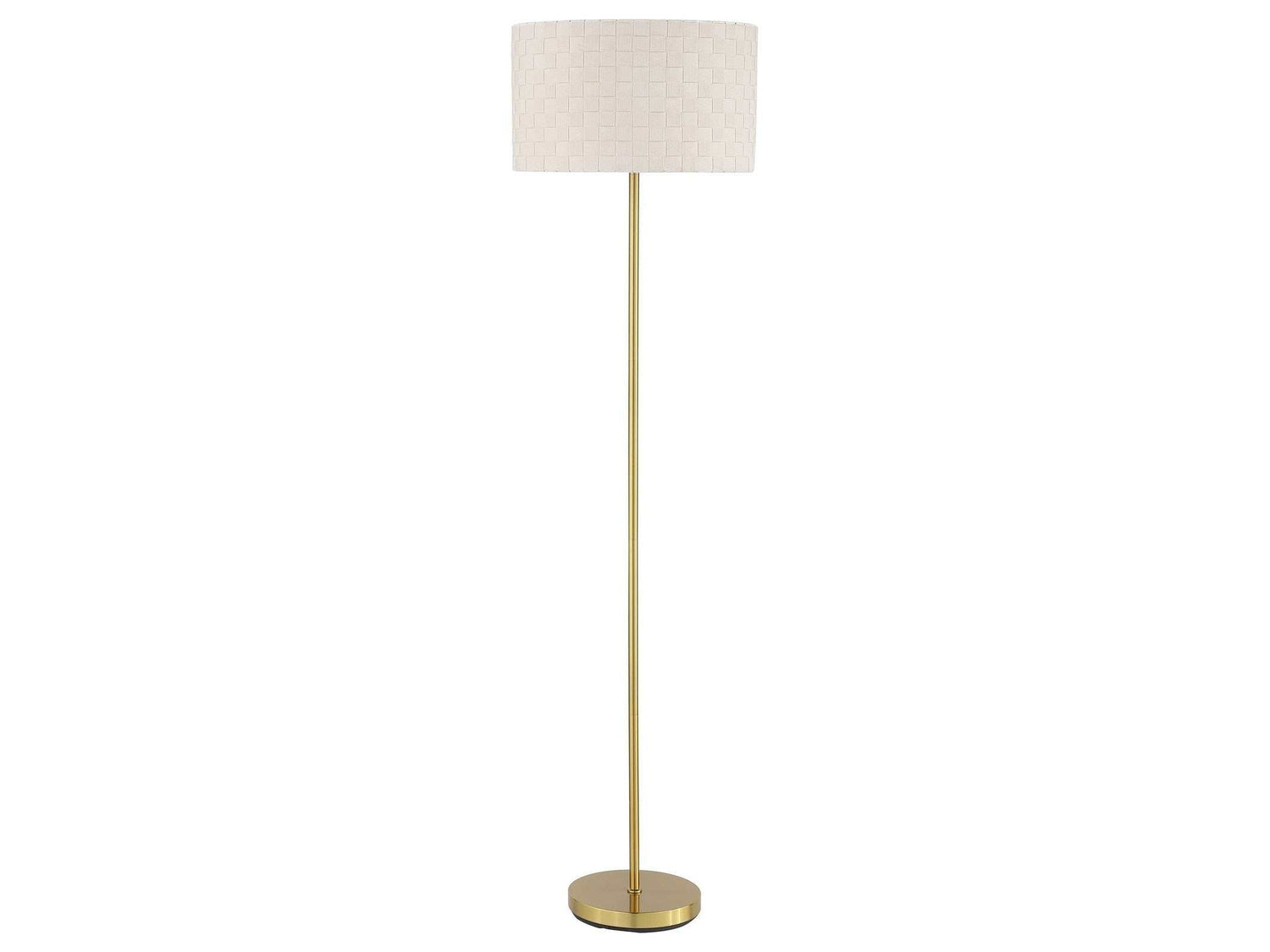 An elegant addition to your living room or bedroom, the Ramiro floor lamp contributes to a tasteful interior design scheme. Versatile and simple at the same time, its pleasing palette complements any room design. This floor lamp features a gleaming gold finished metal pole and base with little fanfare and lots of updated style, as a texture-rich basketweave drum shade in ivory fabric allows glowing illumination to seep through. Operate this floor lamp with a convenient foot switch located on a long cable that offers flexibility in placement. Consider this chic floor lamp a building block and a source of critical lighting.