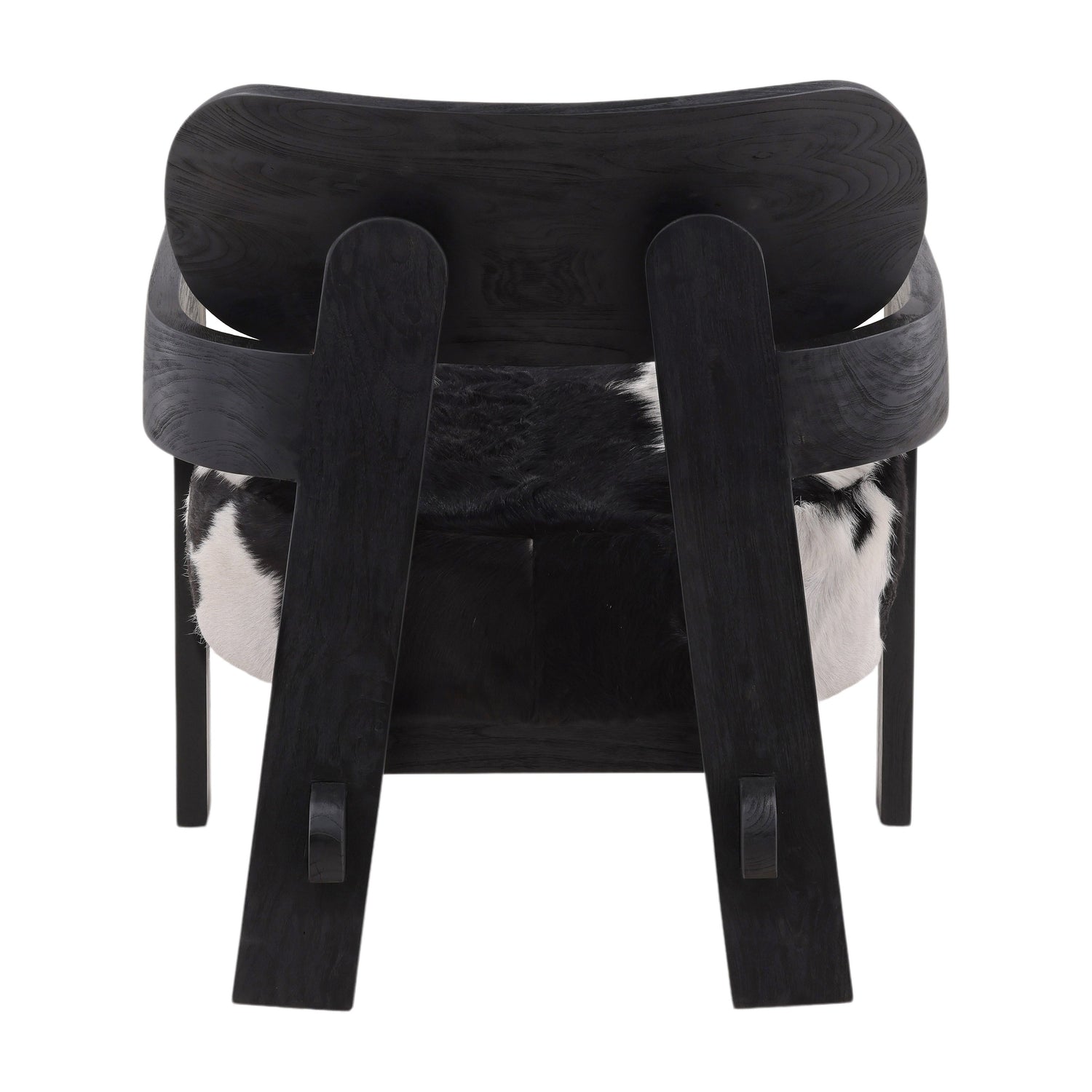 The Raphael Occasional Chair features striking black and white goat hide upholstery paired with a natural teak wood frame. Its bold contrast and sleek design make it a standout piece, adding both sophistication and a touch of rustic charm to any modern or eclectic space.
