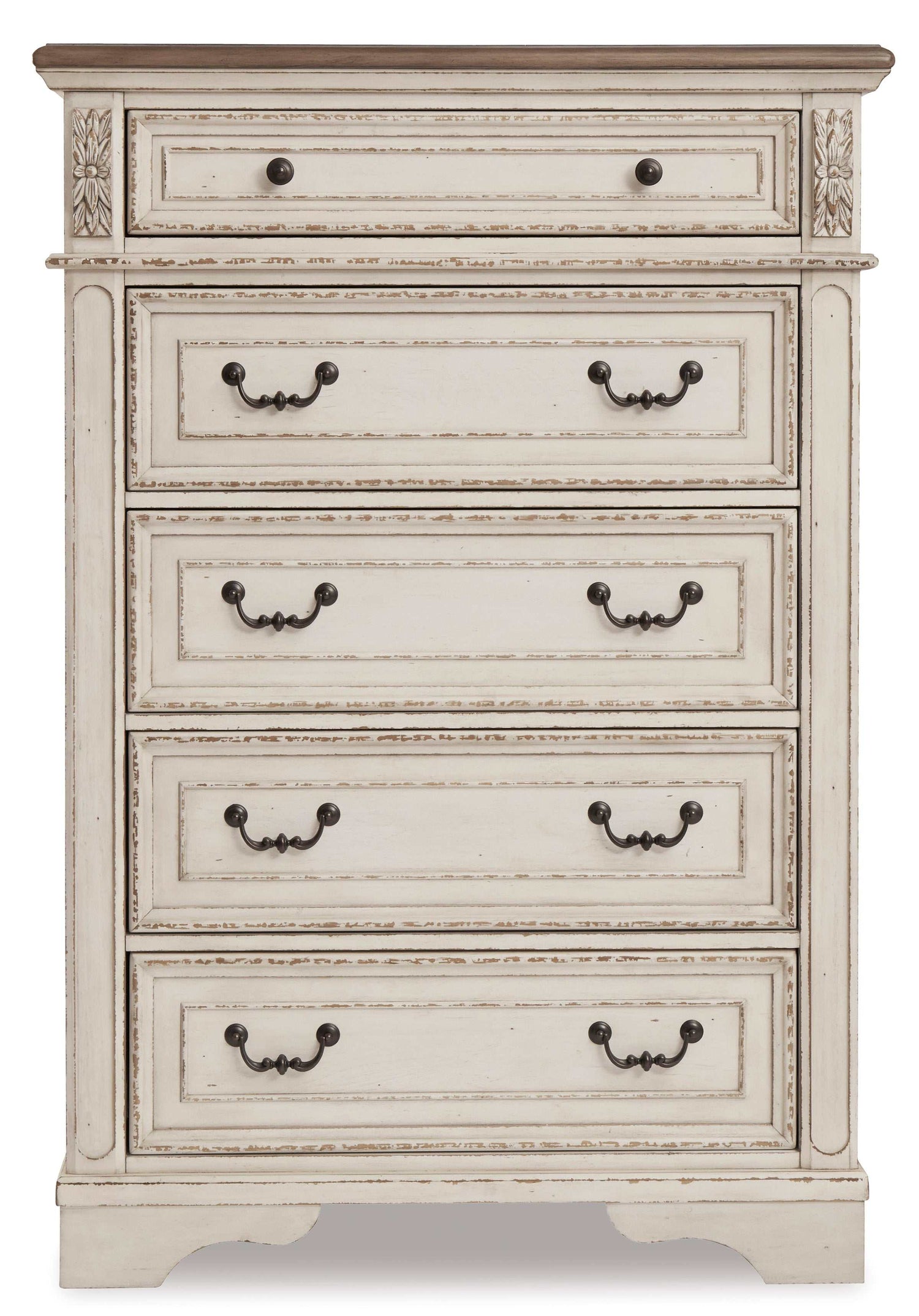 - 5pc Set includes bed, dresser, mirror, nightstand, and chest.