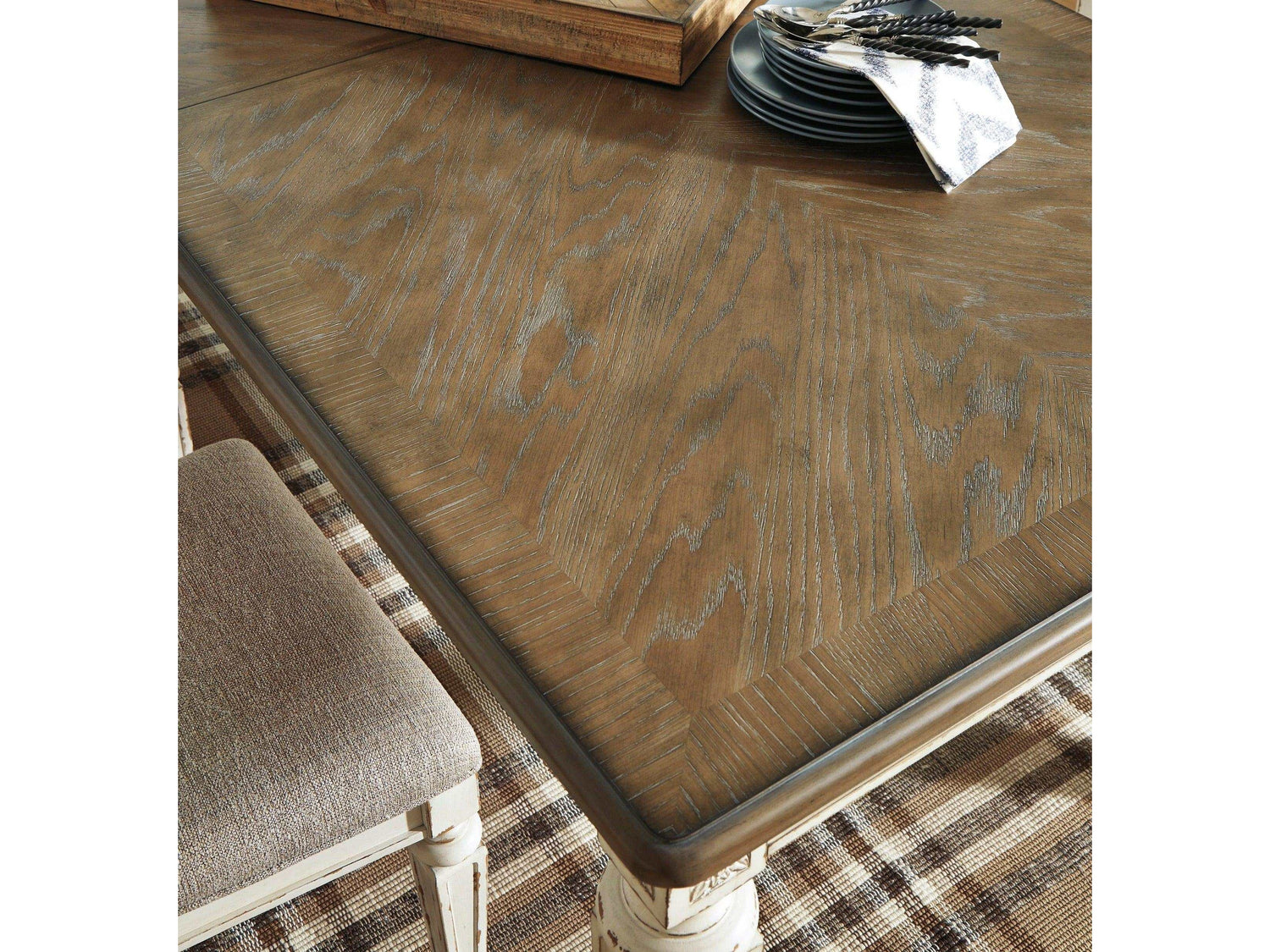 Bon appétit. This 5-piece dining room set has all the right ingredients for a French country-inspired feast for the eyes. Drop-in leaf allows you to transform the intimate square dining table into a gracious extension table that comfortably seats eight. Antiqued two-tone aesthetic pairs chipped white with a distressed wood finished top for a double serving of charm. With its rounded ladderback styling and plushly cushioned seat, this dining room chair is sure to entice you to linger a little longer.