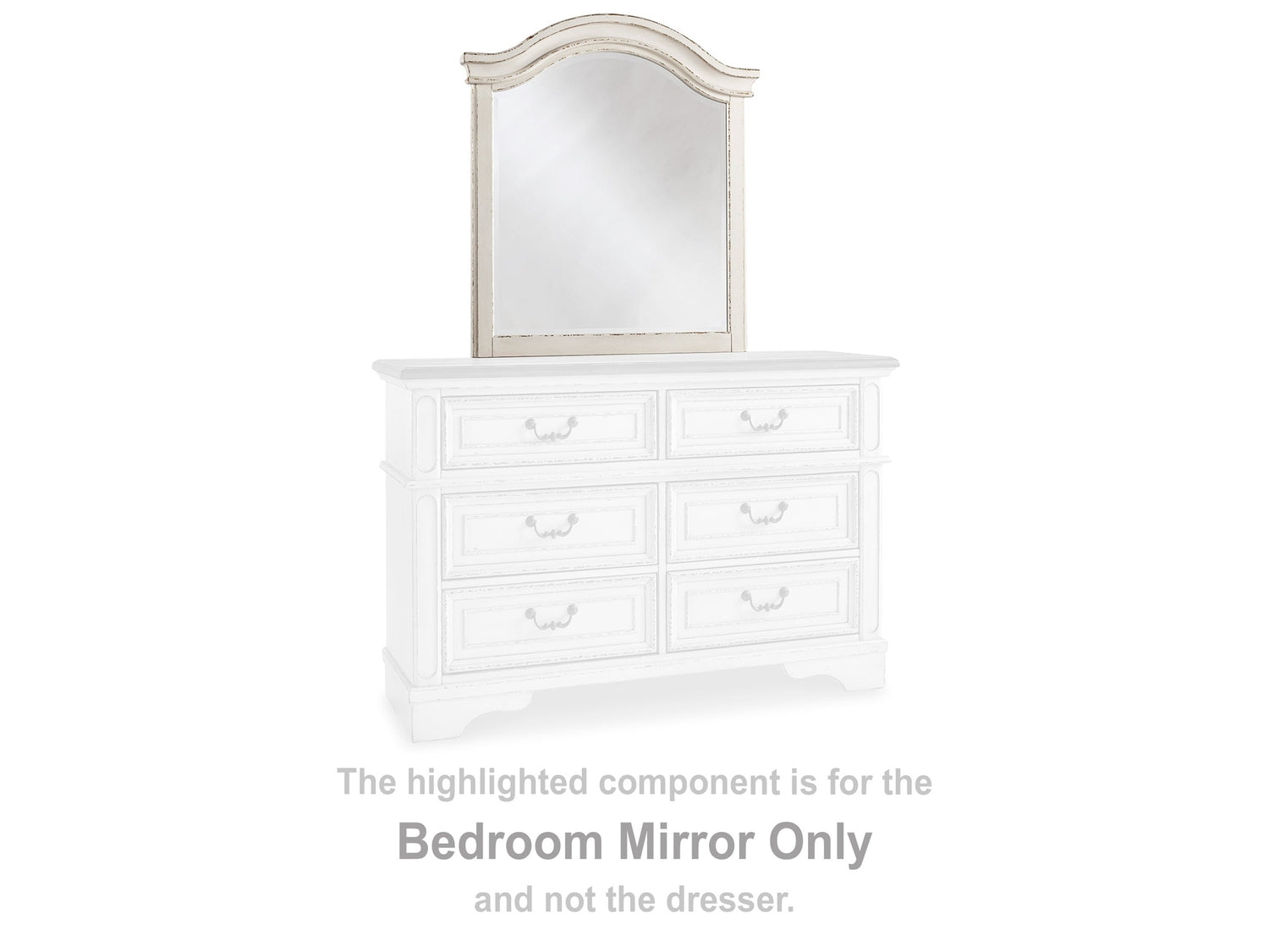Elevating the art of traditional cottage styling, this dresser mirror is her dream bedroom retreat realized. Aesthetic blends a chipped white with a distressed wood finished top for added charm.